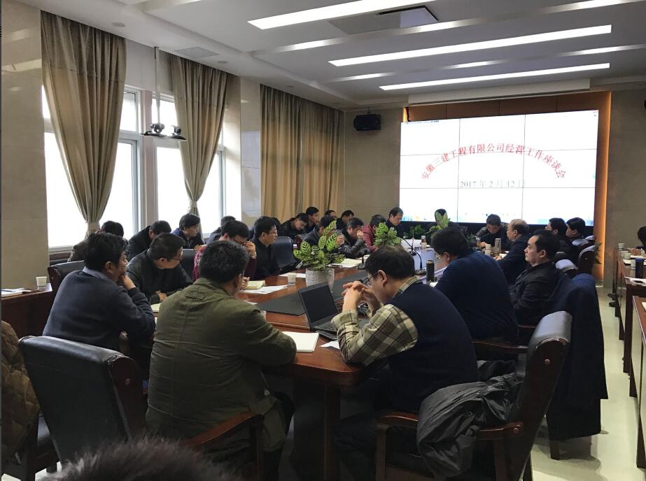 為科學(xué)謀劃安徽三建公司2017年經(jīng)營工作,梳理全年經(jīng)營工作思路,2月12日上午,該司召開2017年經(jīng)營工作座談會,該司董事長、黨委書記、總經(jīng)理左登宏到會指導(dǎo)并作重要講話。所屬各分公司負(fù)責(zé)人、經(jīng)營公司領(lǐng)導(dǎo)班子及相關(guān)人員參加了座談會。會議要求所有參會單位認(rèn)真總結(jié)2016年經(jīng)營工作經(jīng)驗(yàn)與教訓(xùn),查擺梳理影響公司發(fā)展與經(jīng)營工作的制約因素及存在的問題,并對公司2017年經(jīng)營工作提出意見與建議。