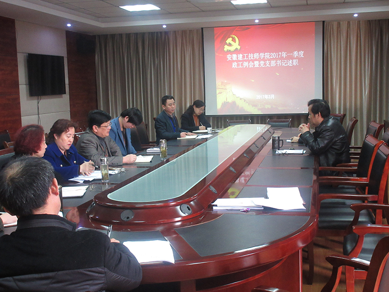 3月7日下午,在學(xué)院三樓會(huì)議室,安徽建工技師學(xué)院黨委召開了2017年一季度政工例會(huì)。會(huì)議由學(xué)院黨委書記、院長張衛(wèi)東主持,紀(jì)委書記、工會(huì)主席吳良照參加會(huì)議,學(xué)院六個(gè)黨支部書記、紀(jì)檢監(jiān)察室楊華陽主任、工會(huì)女工委主任李繼萍、黨工部副主任沈曉云、團(tuán)委書記陳卓參加會(huì)議。會(huì)議有四個(gè)議題:一是各黨支部書記匯報(bào)交流所屬各部門教職員工的思想狀態(tài);二是各支部書記對2016年度支部黨建工作進(jìn)行述職;三是黨委工作部匯報(bào)2016年度各支部黨建工作考核情況;四是黨委工作部解讀即將與各黨支部書記簽訂的2017年度基層黨支部工作目標(biāo)管理責(zé)任書。