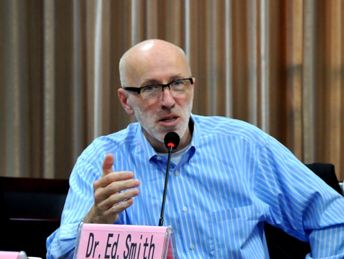 美國田納西州威廉姆森學(xué)院院長Dr.Ed.Smith 、副院長David Carley同與會人員進(jìn)行了深入細(xì)致的交流,重點(diǎn)就職業(yè)教育合作專業(yè)、合作形式、合作方向進(jìn)行了闡述,真誠的希望雙方能夠建立合作。