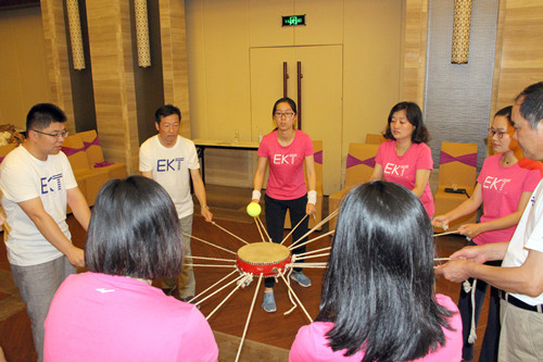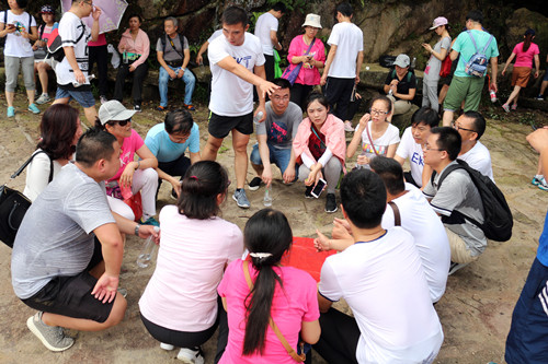從破冰熱身到團隊組建,從速度與激情到鼓動人心等每一個培訓(xùn)環(huán)節(jié)都充滿智慧和挑戰(zhàn)。參加培訓(xùn)的教職員工都以積極的態(tài)度,飽滿的熱情,全身心地投入到培訓(xùn)中,充分體現(xiàn)了學(xué)院教職工凝心聚力、眾志成城、共筑夢想的良好精神面貌。整個培訓(xùn)過程,大家始終保持高昂的斗志,為了贏得每一個小小的勝利,每一個團隊都齊心協(xié)力、團結(jié)拼搏,每一個人都開動腦筋,拼盡全力,完成了各種挑戰(zhàn)任務(wù),表現(xiàn)出非常高的團隊精神和集體榮譽感。在“前方有難,后方支援”的游戲環(huán)節(jié)中,我們看到為了支援前方,后方不管有多大困難都傾盡全力支持。在“鼓動人心”的游戲環(huán)節(jié)中,那專注的眼神,迅疾的挪位,完美無瑕的配合,令人為之動容。在“雙解碼”徒步行進中,參訓(xùn)隊員一邊頭頂炎炎烈日,互相攙扶,踏過嶙峋溝壑,一邊緊鑼密鼓地敲定解決問題的最佳方案,布置每個人之間的分工協(xié)作。就這樣,所有的困難都被我們克服,所有的挑戰(zhàn)都被我們戰(zhàn)勝。培訓(xùn)過程中,大家增進了友誼,加深了了解,拉近了彼此之間的距離。大家深深地體會到,我們的教工隊伍是一支充滿激情和有著無限潛力的隊伍,只要大家團結(jié)一心,就沒有克服不了的困難。