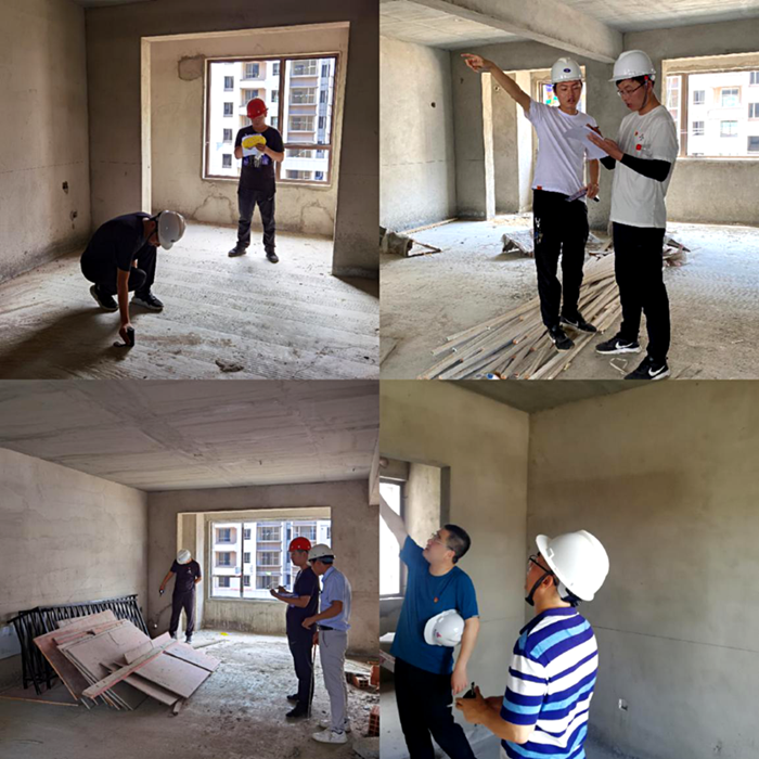 活動中,4個黨員驗房小組,嚴格依據(jù)驗房標準,對安建地產(chǎn)·翰林天筑小區(qū)8#號樓32戶房屋進行了認真細致的查驗,詳細記錄每套房屋在樓地面、門窗、防水、欄桿、室內(nèi)尺寸、電氣、給排水、煙道、公共部位等方面存在的質(zhì)量問題,并由活動驗房小組組長整理、匯總,反饋至責任單位整改。