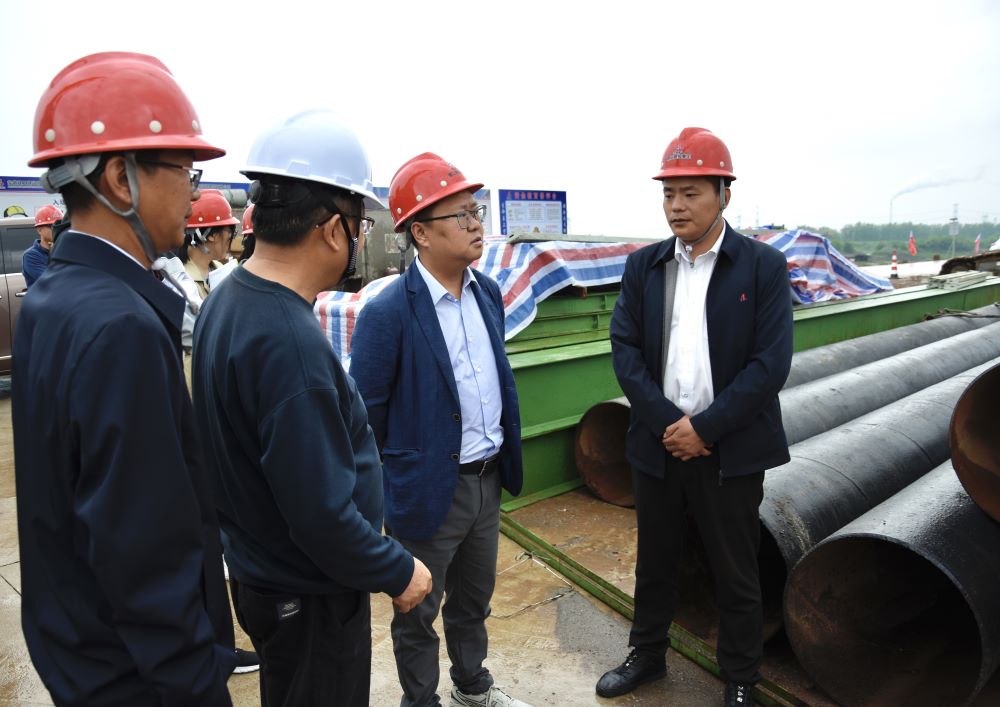 在黃滸河特大橋建設(shè)現(xiàn)場(chǎng),程軼一行詳細(xì)查看了工程進(jìn)展,認(rèn)真聽取了項(xiàng)目負(fù)責(zé)人關(guān)于工程概況、建設(shè)進(jìn)度及重難點(diǎn)問題的匯報(bào),就施工進(jìn)度、質(zhì)量控制、安全環(huán)保等關(guān)鍵環(huán)節(jié)與項(xiàng)目負(fù)責(zé)人進(jìn)行了深入交流,并對(duì)項(xiàng)目及團(tuán)隊(duì)建設(shè)給予充分肯定。