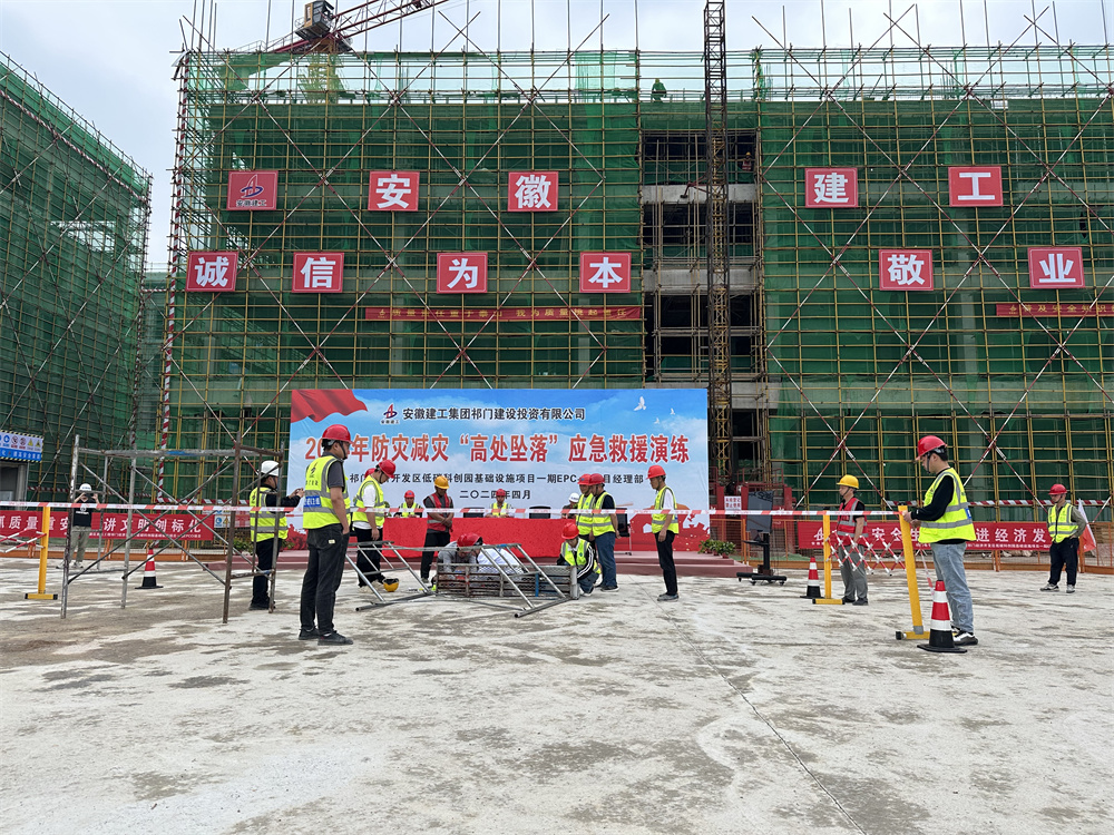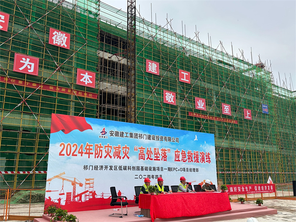 4月25日,祁門低碳科創(chuàng)園項(xiàng)目開展“高處墜落”應(yīng)急救援演練。