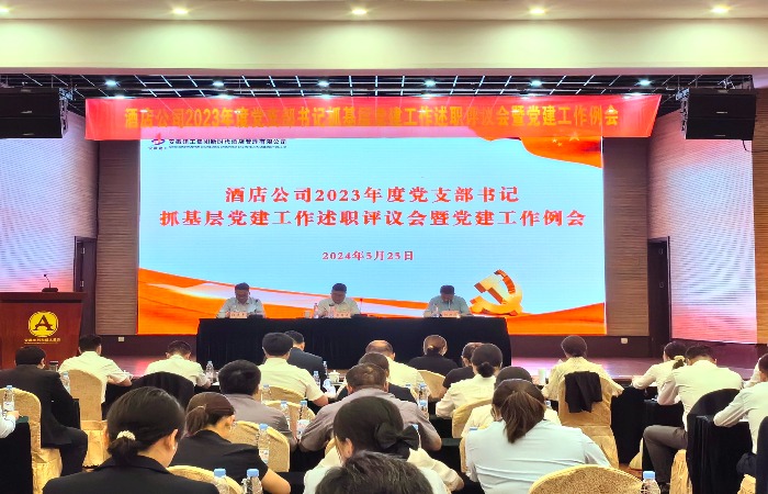 5月25日下午,酒店公司黨委召開2023年度黨支部書記抓基層黨建工作述職評議會暨黨建工作例會。公司黨委委員、副總經(jīng)理、工會主席劉新迎主持會議,公司黨委副書記、副總經(jīng)理李靜波出席會議并講話。