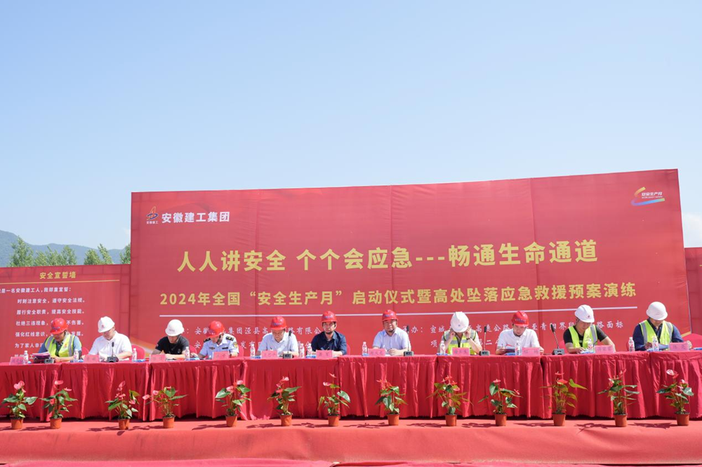 啟動(dòng)儀式上,項(xiàng)目公司對(duì)集團(tuán)下發(fā)的2024年“安全生產(chǎn)月”活動(dòng)方案進(jìn)行了宣貫,同時(shí),進(jìn)行了安全宣誓并開(kāi)展高處墜落應(yīng)急救援演練活動(dòng)。