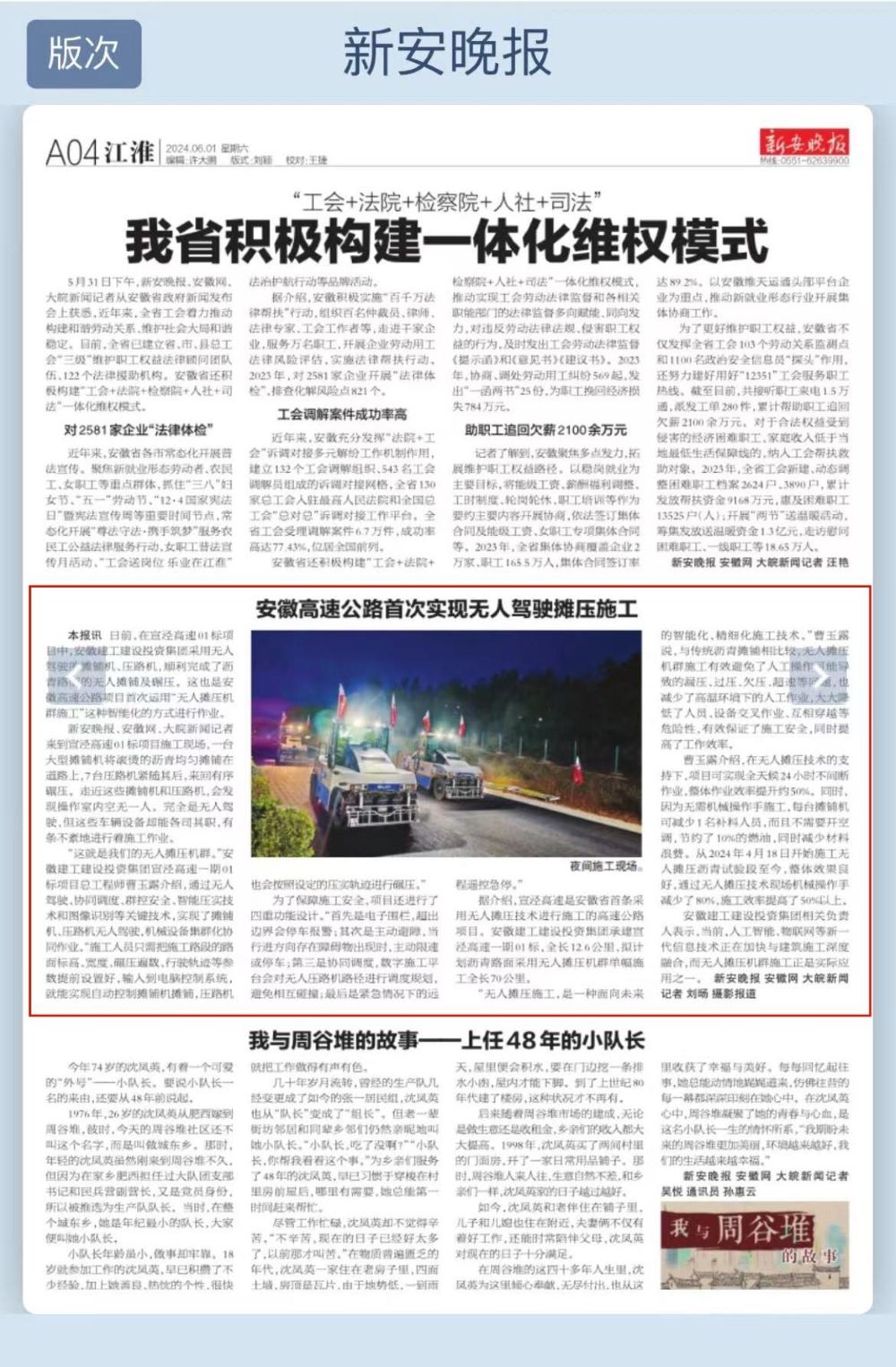 近日,新安晚報(bào)深入建工建投集團(tuán)宣涇高速01標(biāo)項(xiàng)目施工現(xiàn)場,就該項(xiàng)目運(yùn)用“無人攤壓機(jī)群施工”智能化方式作業(yè)進(jìn)行深入報(bào)道。