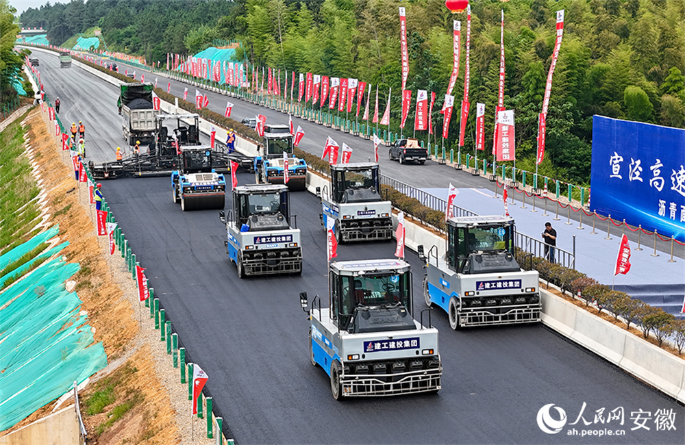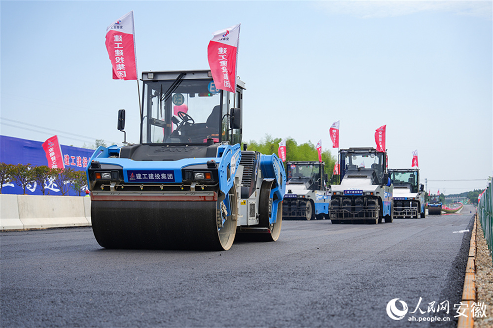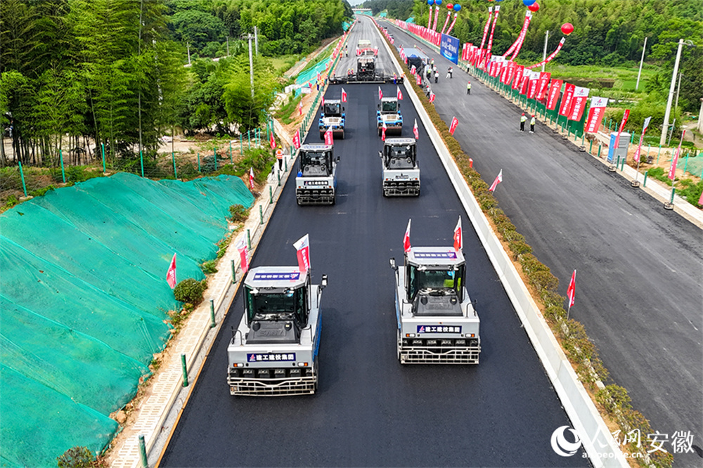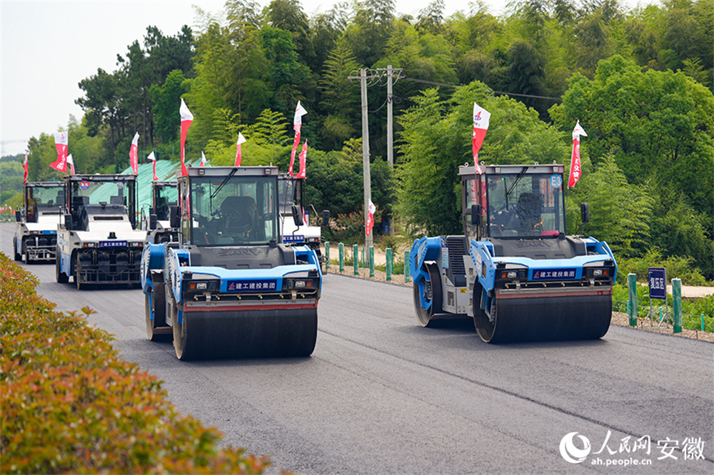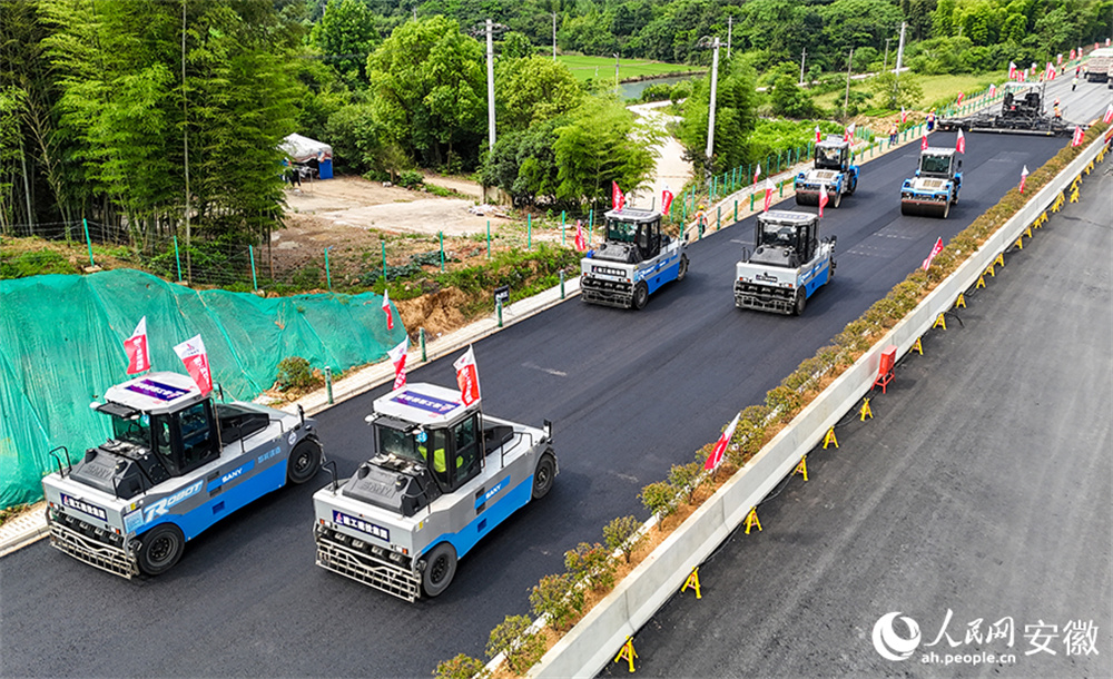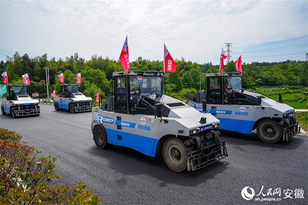 人民網(wǎng)宣城6月6日電(記者苗子?。?月3日,在宣涇高速一期01標項目現(xiàn)場,1臺大型攤鋪機和6臺壓路機在沒有駕駛員的情況下,通過集群化協(xié)同作業(yè)的方式,精準完成了瀝青面層攤鋪、碾壓工作。這也是安徽高速公路項目首次運用“無人攤壓機群施工”這種智能化的方式進行作業(yè)。