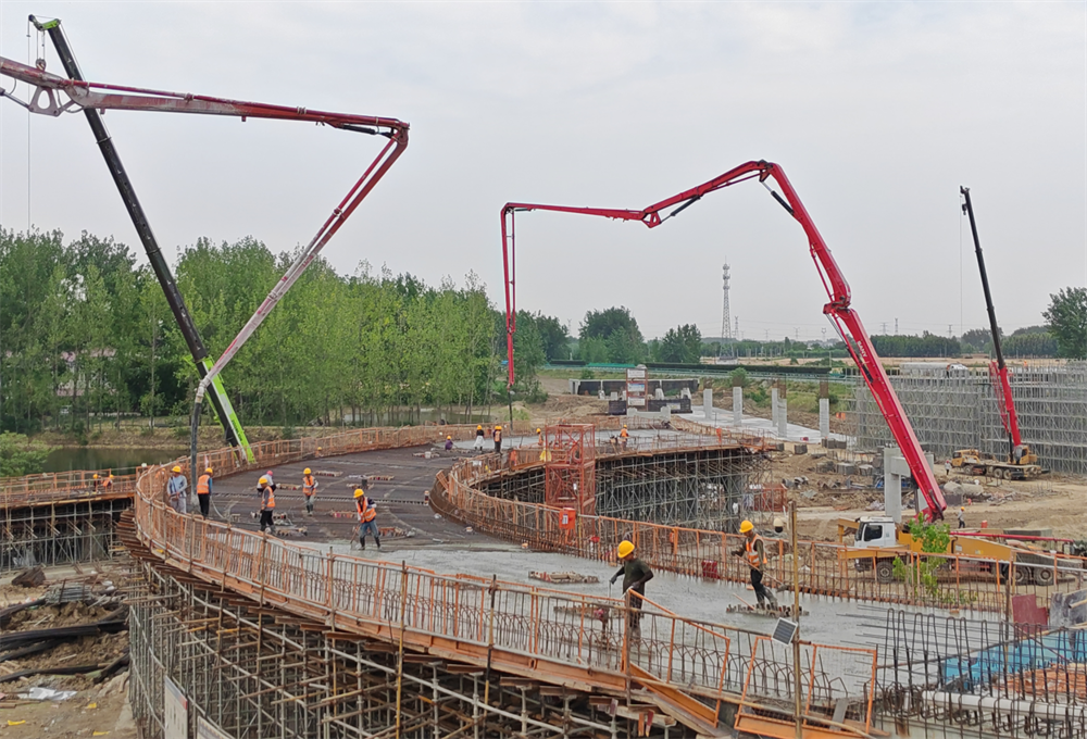 五蒙高速05標(biāo)項(xiàng)目現(xiàn)場,匝道橋涉水現(xiàn)澆梁施工正如火如荼地進(jìn)行,現(xiàn)已全部完成樞紐下部結(jié)構(gòu)施工階段,正式進(jìn)入主線橋面系施工階段?,F(xiàn)場時(shí)間仿佛被按下了快進(jìn)鍵,機(jī)器轟鳴聲此起彼伏,各類工程車輛往來穿梭,工人們揮汗如雨,分工明確,在各自的崗位上緊張而有序地忙碌著,大家都在以只爭朝夕的勁頭和分秒必爭的行動(dòng),齊心協(xié)力、全力以赴推進(jìn)工程進(jìn)度。
