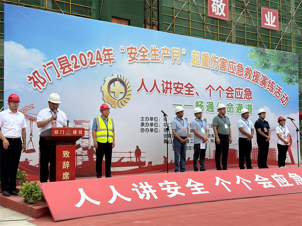 6月18日,祁門縣2024年“安全生產(chǎn)月”起重傷害應(yīng)急救援演練活動(dòng)在祁門低碳科創(chuàng)園項(xiàng)目順利開(kāi)展。祁門縣人民政府、祁門縣應(yīng)急管理局、祁門縣住建局、祁門縣建筑業(yè)協(xié)會(huì)的相關(guān)領(lǐng)導(dǎo),以及祁門縣內(nèi)施工企業(yè)負(fù)責(zé)人、分管安全工作負(fù)責(zé)人、安全員和在建工程項(xiàng)目經(jīng)理、外地施工企業(yè)項(xiàng)目負(fù)責(zé)人和安全員、在建工程監(jiān)理負(fù)責(zé)人和建設(shè)開(kāi)發(fā)項(xiàng)目負(fù)責(zé)人約200人現(xiàn)場(chǎng)觀摩。