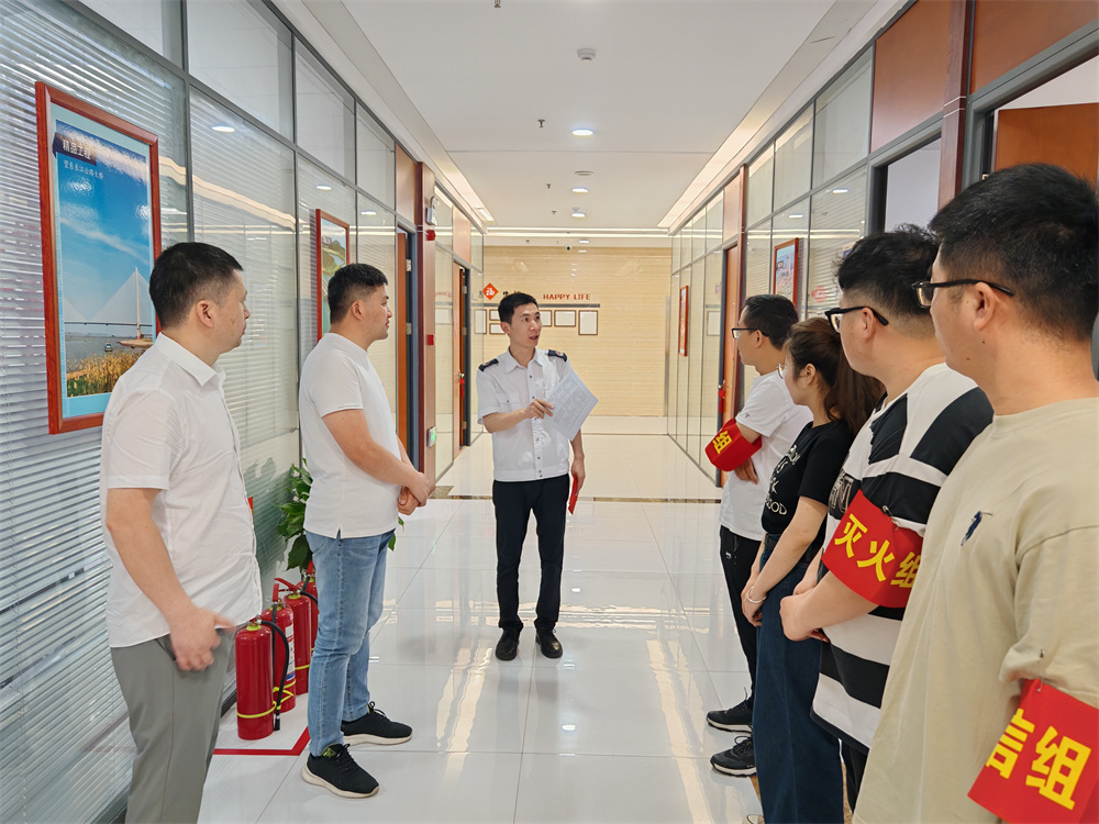 交底結(jié)束后,所有人員返回各自工作崗位,隨著警報(bào)聲響起,疏散組第一時(shí)間到位,在引導(dǎo)所有人員利用手邊毛巾、口罩等物品輕捂口鼻,躬身快速從設(shè)定起火點(diǎn)的另一側(cè)樓梯撤離至一樓廣場(chǎng)安全地帶后,及時(shí)對(duì)現(xiàn)場(chǎng)進(jìn)行警戒和封控,信息聯(lián)絡(luò)組人員緊急開展對(duì)外聯(lián)絡(luò)和清點(diǎn)人數(shù)工作,應(yīng)急救援組配合人數(shù)清點(diǎn),并及時(shí)開展傷員的前期處置和心理疏導(dǎo),滅火組立即組織人員對(duì)模擬火點(diǎn)進(jìn)行初起撲滅工作,整個(gè)演練過程迅速而有序。
