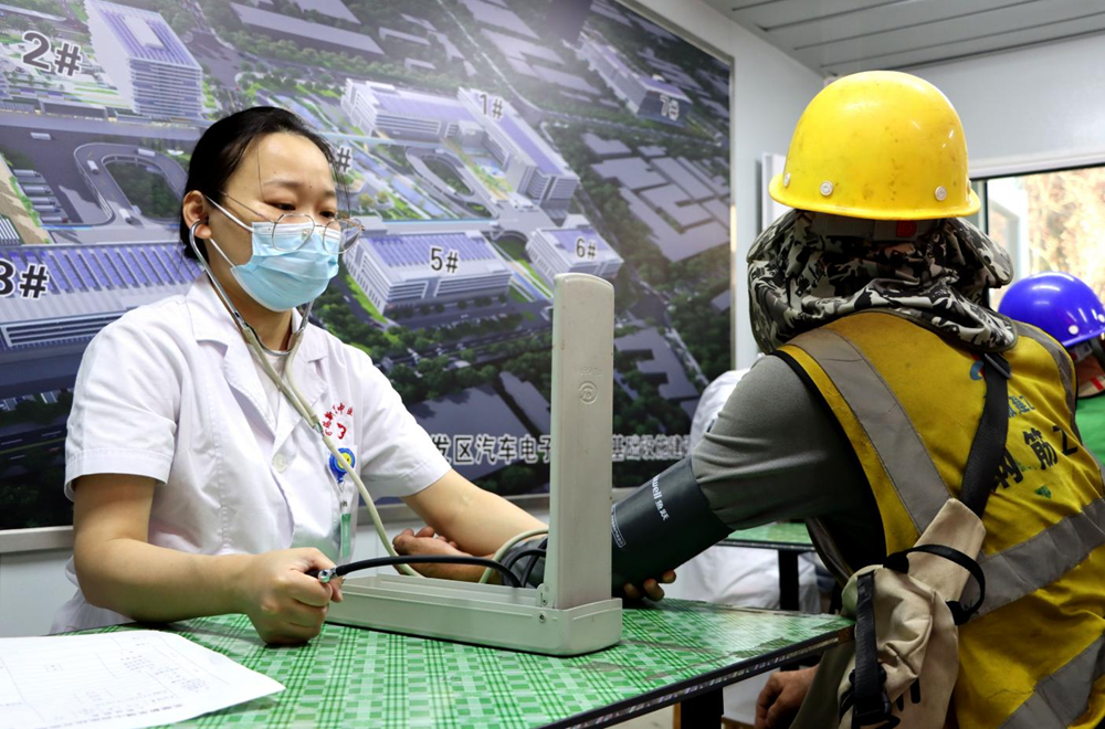 安徽建工蕪湖經(jīng)開(kāi)區(qū)汽車電子產(chǎn)業(yè)園項(xiàng)目部將關(guān)愛(ài)職工身體健康,預(yù)防、控制和消除職業(yè)病危害作為項(xiàng)目安全管理的一項(xiàng)重要內(nèi)容。6月18日,項(xiàng)目組織開(kāi)展“安全生產(chǎn)月”健康體檢活動(dòng),邀請(qǐng)專業(yè)醫(yī)療團(tuán)隊(duì)走進(jìn)一線,給施工人員提供包括血壓、血糖、血常規(guī)、心電圖在內(nèi)的多項(xiàng)針對(duì)性檢查,并就健康問(wèn)題進(jìn)行專業(yè)指導(dǎo),讓工友們以健康狀態(tài)投入項(xiàng)目建設(shè),助力公司高質(zhì)量發(fā)展。