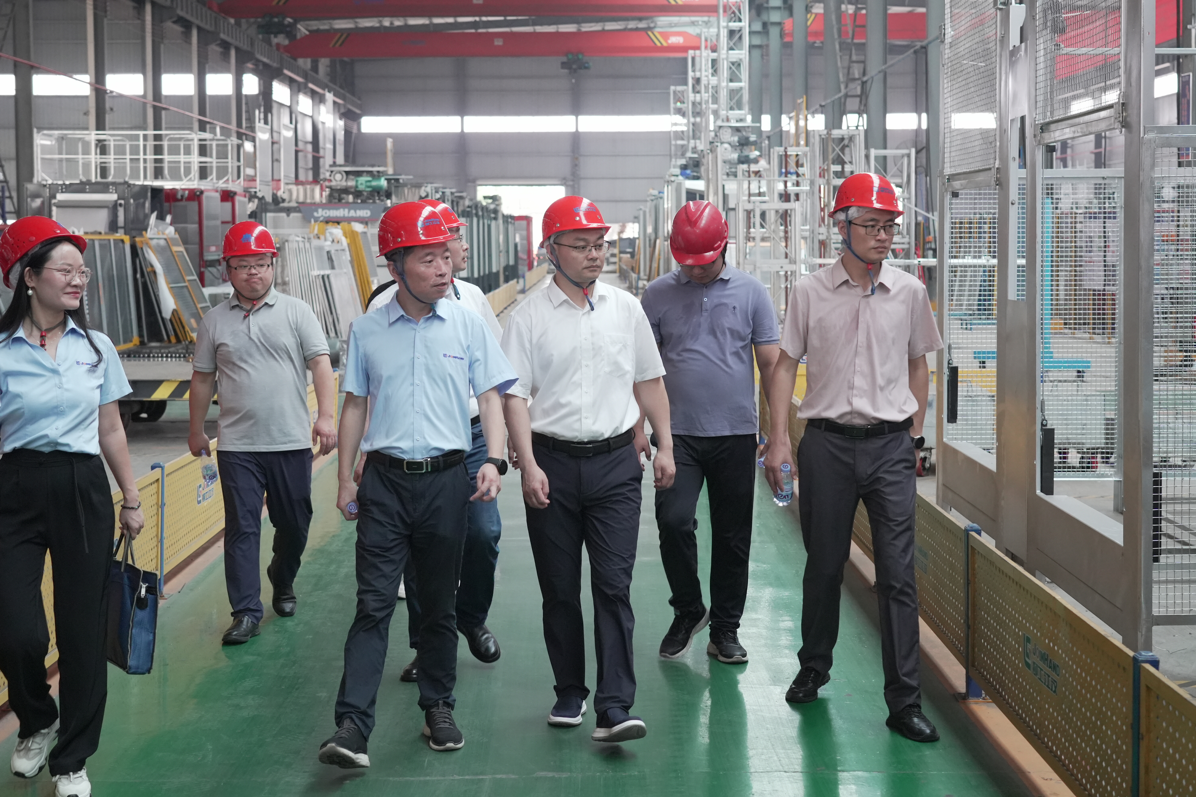 此次到訪江漢建機公司旨在尋求設(shè)備產(chǎn)品的深度合作,為設(shè)備租賃公司在智能無人、節(jié)能綠色設(shè)備更新?lián)Q代奠定基礎(chǔ)。考察組參觀了江漢建機智能制造基地,現(xiàn)場觀摩了江漢建機針對不同應(yīng)用場景研發(fā)的無人智能升降機產(chǎn)品,這些產(chǎn)品功能為設(shè)備租賃公司服務(wù)客戶需求提供了支撐。