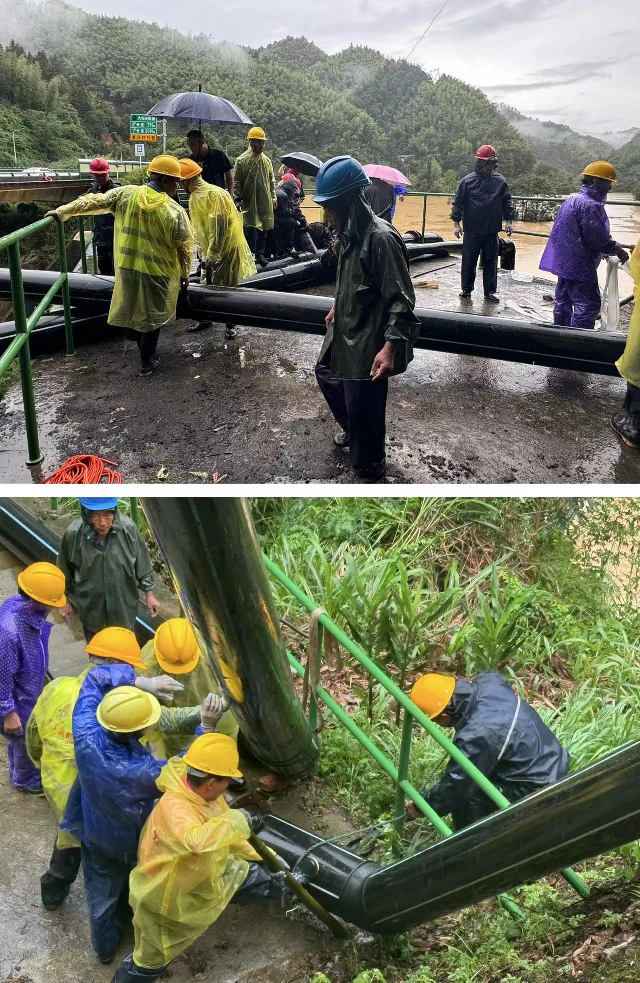 面對緊急情況,分公司應急搶險隊積極與在場政府救援人員溝通對接,確定方案,決定通過在水庫架設(shè)兩根排水管,通過虹吸的方式來加大水庫排水量,從而降低水庫水位。