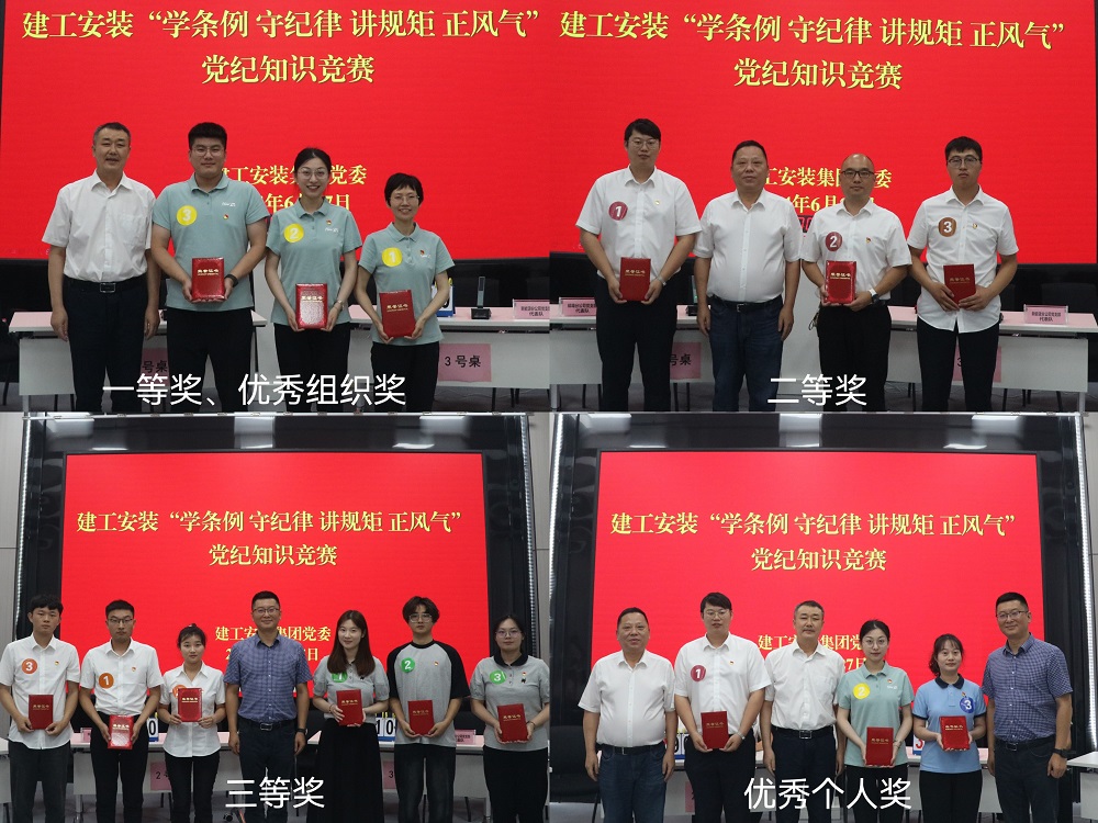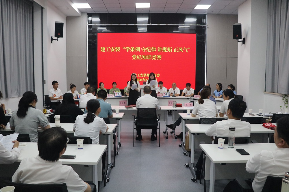 6月27日下午,建工安裝集團(tuán)舉辦“學(xué)條例 守紀(jì)律 講規(guī)矩 正風(fēng)氣”黨紀(jì)知識競賽。公司黨委委員、紀(jì)委書記李楊,黨委委員、副總經(jīng)理董雙武,黨委委員、副總經(jīng)理樊剛出席活動,各黨支部書記、機(jī)關(guān)部門負(fù)責(zé)人以及參賽選手等40余人參加活動。