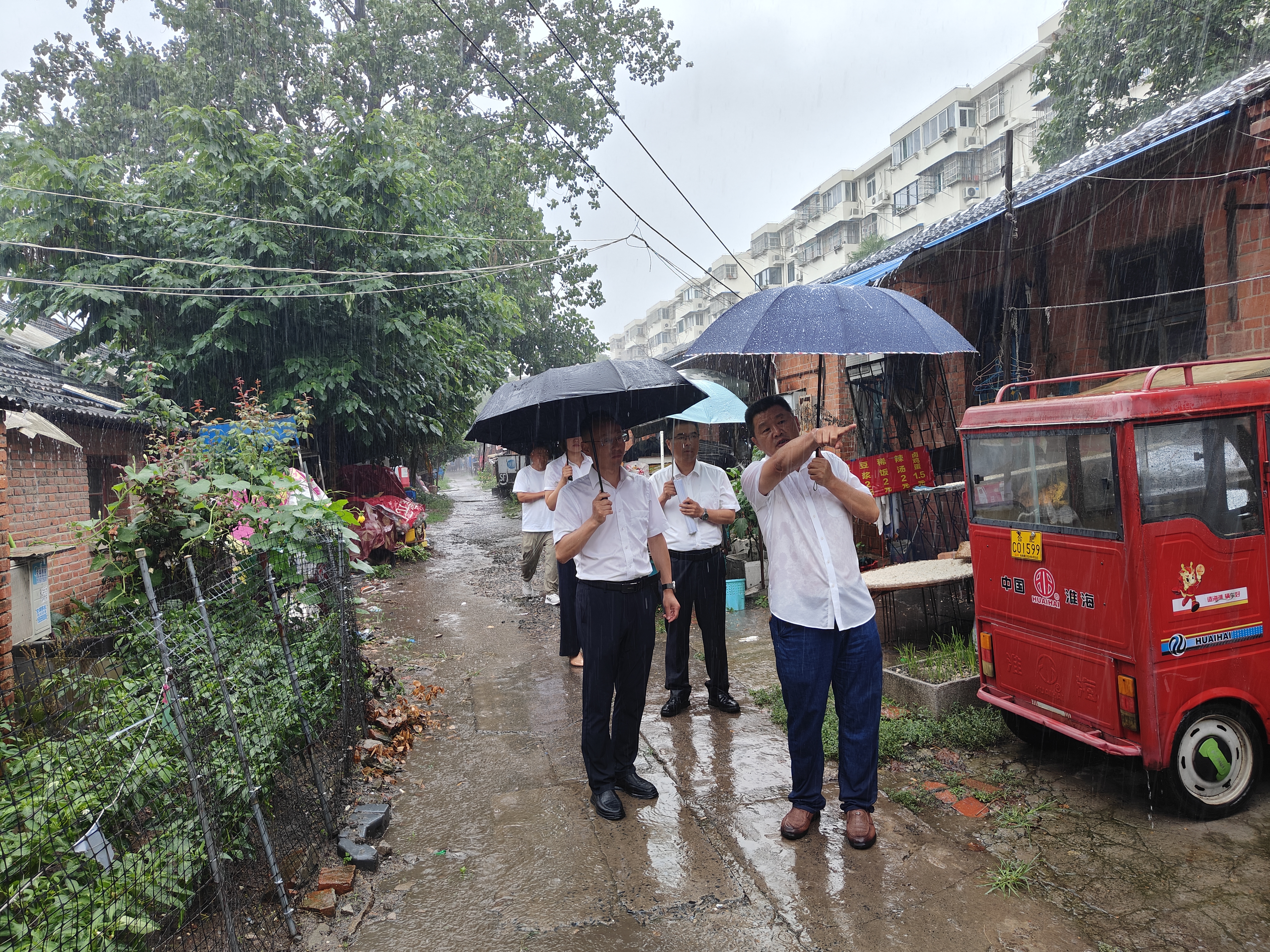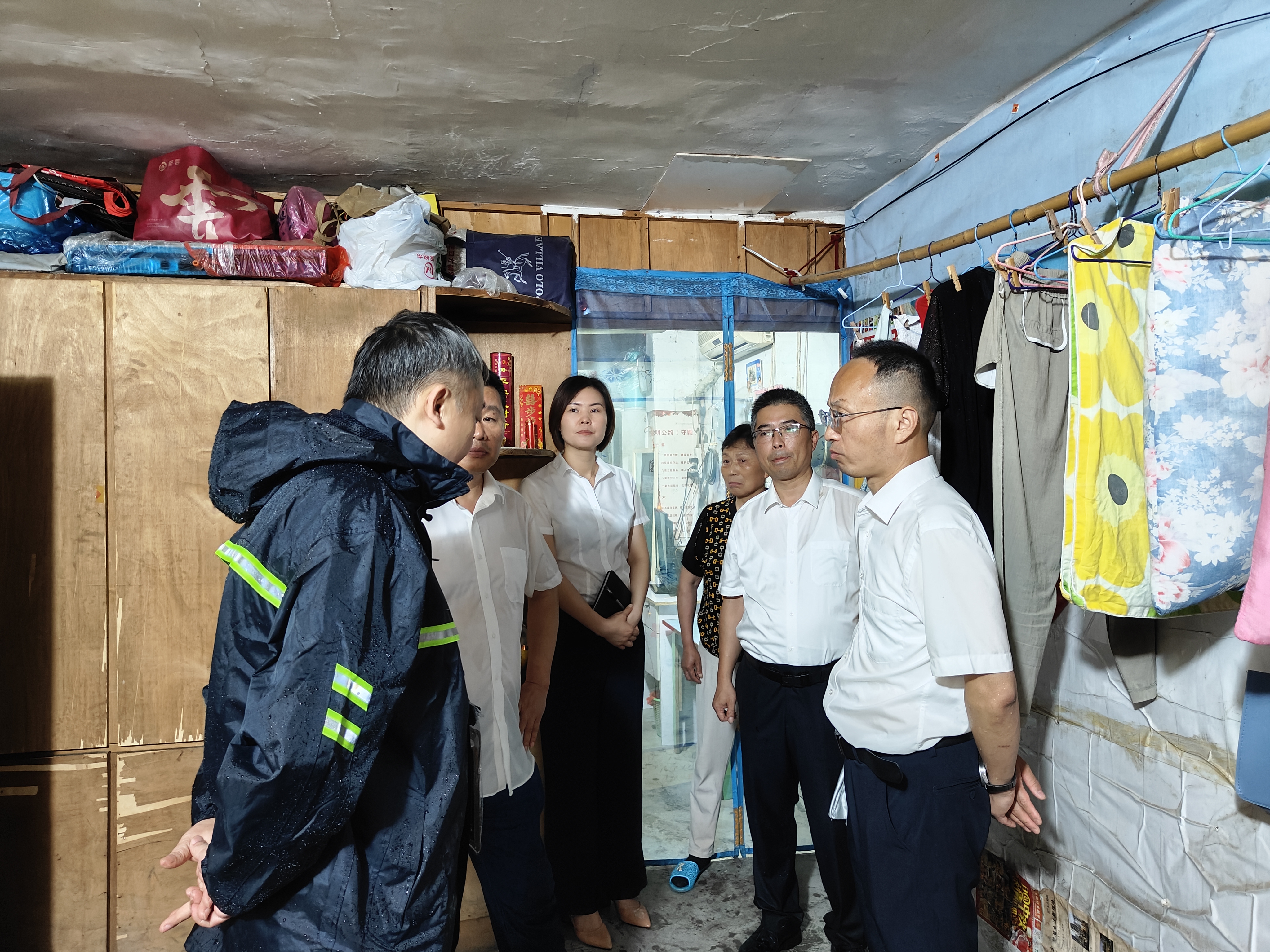 大雨磅礴,道路濕滑,周曉彧一行認(rèn)真排查各小區(qū)老舊房屋結(jié)構(gòu)、墻體、屋面等重點(diǎn)部位是否出現(xiàn)險(xiǎn)情隱患,并與住戶(hù)面對(duì)面交流,詳細(xì)詢(xún)問(wèn)房屋內(nèi)外部情況和生活上面臨的困難,與轄區(qū)街道相關(guān)領(lǐng)導(dǎo)共商應(yīng)對(duì)措施,并對(duì)存在一定隱患的房屋住戶(hù)進(jìn)行臨時(shí)疏散。