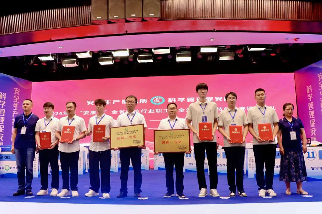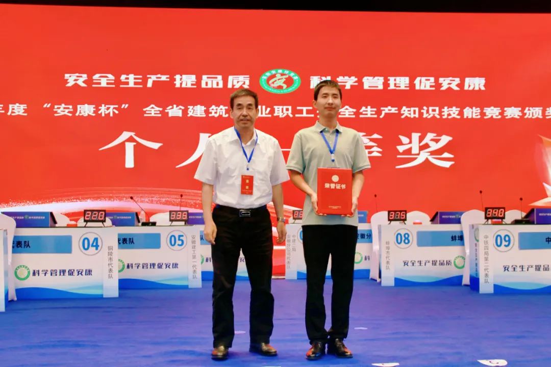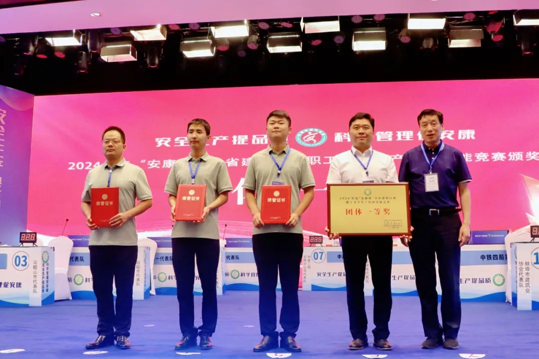 來自全省的32支代表隊(duì),經(jīng)過為期2天的預(yù)賽和決賽激烈角逐,蚌埠市建筑業(yè)協(xié)會(huì)代表隊(duì)榮獲團(tuán)體一等獎(jiǎng),蚌埠市代表隊(duì)和安徽水利代表隊(duì)榮獲團(tuán)體二等獎(jiǎng),中鐵四局二隊(duì)、安徽建工一隊(duì)、安徽建工二隊(duì)、阜陽市代表隊(duì)榮獲團(tuán)體三等獎(jiǎng)。安徽水利開發(fā)有限公司、蚌埠市建筑業(yè)協(xié)會(huì)榮獲特殊貢獻(xiàn)獎(jiǎng),蚌埠市建筑業(yè)協(xié)會(huì)代表隊(duì)劉勇榮獲個(gè)人一等獎(jiǎng),蚌埠市代表隊(duì)關(guān)心、安徽水利代表隊(duì)陳騫榮獲個(gè)人二等獎(jiǎng)。