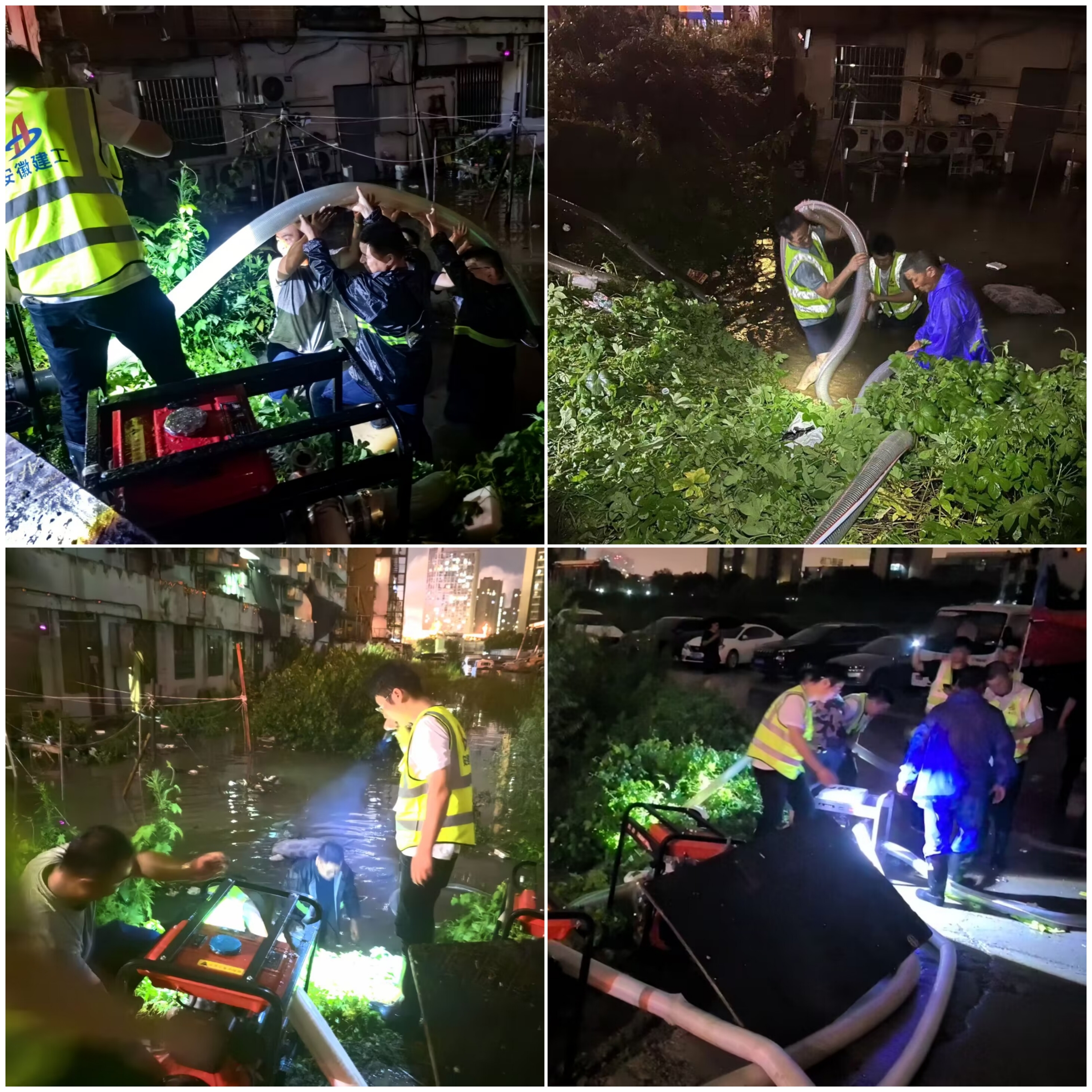 7月1日,受連續(xù)強降雨影響,肥西縣湯口路繁華新園社區(qū)地勢低矮的居民樓出現(xiàn)嚴重的內(nèi)澇險情,導(dǎo)致道路癱瘓,給居民的出行和生活帶來極大不便。四分公司潭沖河家園項目迅速集結(jié)黨員及職工20余人,深夜奮戰(zhàn)在搶險救援的最前沿?,F(xiàn)場積水最深處約1米,不少底層建筑已被水淹沒,隨即,救援人員分為3個小組,攜帶3臺柴油泵及數(shù)百米皮管投入搶險工作,分工明確、配合默契、齊心協(xié)力下,經(jīng)過三個多小時的連續(xù)奮戰(zhàn),積水被迅速排除,險情得到了有效控制,人民群眾的生命財產(chǎn)安全得到了有力保障。