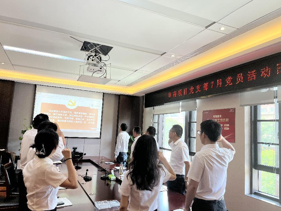 阜南項(xiàng)目黨支部組織全體黨員及發(fā)展對象開展慶祝建黨103周年主題黨日活動,重溫入黨誓詞,強(qiáng)化黨員意識。全體黨員莊重地進(jìn)行了入黨宣誓,共同重溫入黨誓詞。這莊嚴(yán)神圣的誓詞,深深地觸動了在場的每一位黨員,進(jìn)一步堅(jiān)定了他們?yōu)楣伯a(chǎn)主義事業(yè)奮斗終身的理想信念和決心。