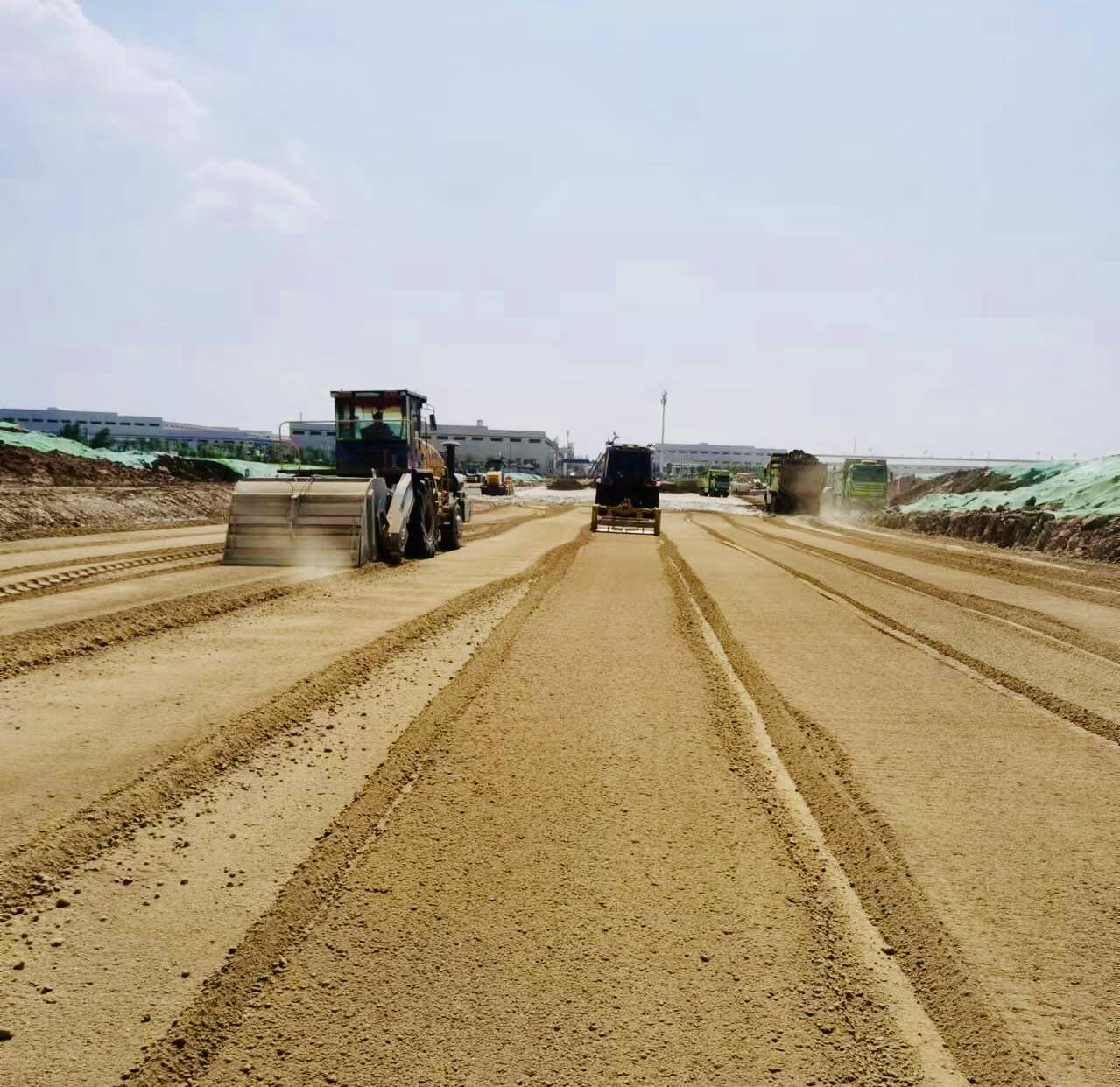 關(guān)麓路項目克服各種不利因素,積極調(diào)整工序,優(yōu)化施工方案,細化生產(chǎn)工作。項目部合理安排組織施工,加強現(xiàn)場安全質(zhì)量檢查,統(tǒng)籌協(xié)調(diào)人員、材料、機械?,F(xiàn)場兩大工區(qū)輪流倒班、齊頭并進,加班加點搶趕工期。目前,項目已全面進入路面基層施工階段,土石方工程完成54%,道路工程完成20%,排水工程完成27%,電排工程完成93%,計劃在7月底東半幅主體完工并放行交通。