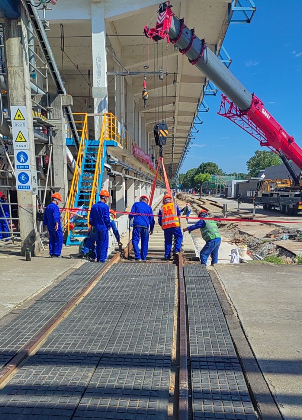 在建工安裝安慶分公司新增鐵路接卸純苯設施項目施工現(xiàn)場,為將前期因雨天耽誤的工期“搶”回來,施工隊伍采取快速穿插方式對電纜鋪設、整體道床排水溝施工、站內管廊焊接等項目有條不紊地同步推進,力爭進度如期推進。