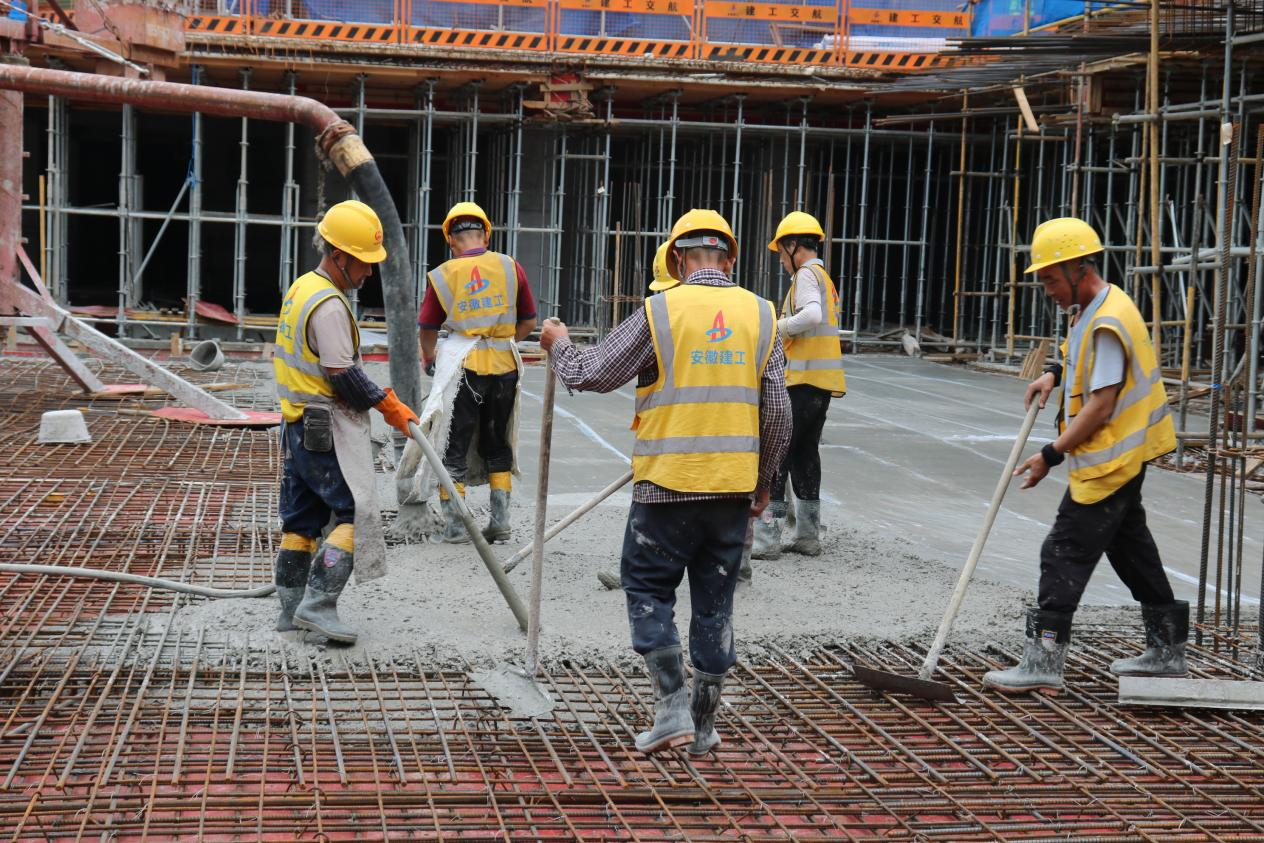 ▲合肥瑤海區(qū)商機(jī)廠項(xiàng)目-5區(qū)地庫負(fù)二層頂板混凝土澆筑
