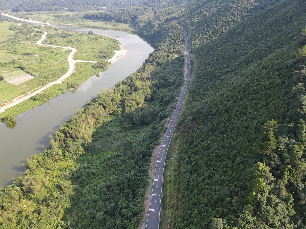 榔車路設(shè)計(jì)為四級(jí)公路等級(jí),長(zhǎng)4.174km,寬6m,起點(diǎn)位于涇縣榔橋鎮(zhèn)里坊坑?xùn)|側(cè)茶園,沿徽水河左岸山體布線,終點(diǎn)與榔茂路平交,是連通牛嶺庫(kù)區(qū)移民安置點(diǎn)和滿足水庫(kù)周邊居民的生產(chǎn)生活交通需求的重要通道。