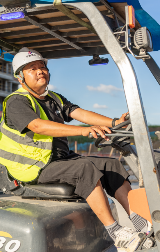 駕駛著叉車的張智,正忙著進(jìn)行磚塊的搬運(yùn)和裝卸工作。面色堅(jiān)定,汗水從額頭上流下,但他絲毫沒有懈怠,始終保持著專注與嚴(yán)謹(jǐn)?shù)膽B(tài)度,確保每一項(xiàng)任務(wù)的安全與高效完成。
