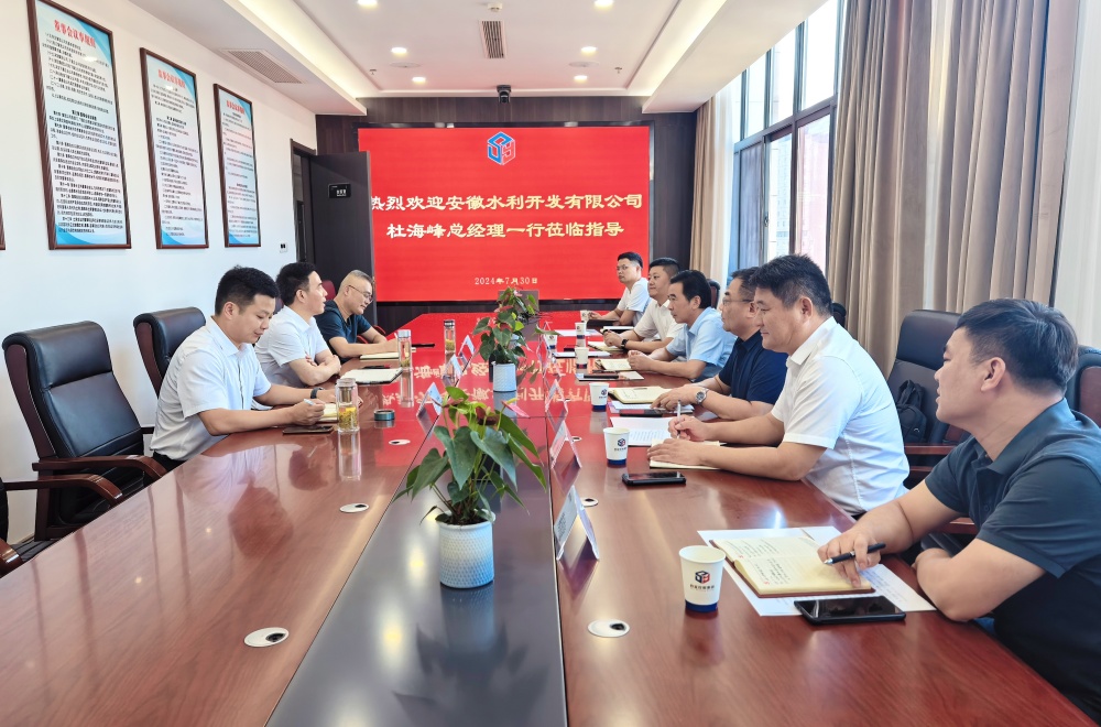 7月30日,安徽水利黨委副書記、總經(jīng)理杜海峰赴安徽省四宜控股(集團)有限公司開展商務交流活動,并與安徽省四宜控股(集團)有限公司黨委書記、董事長王暉舉行會談。