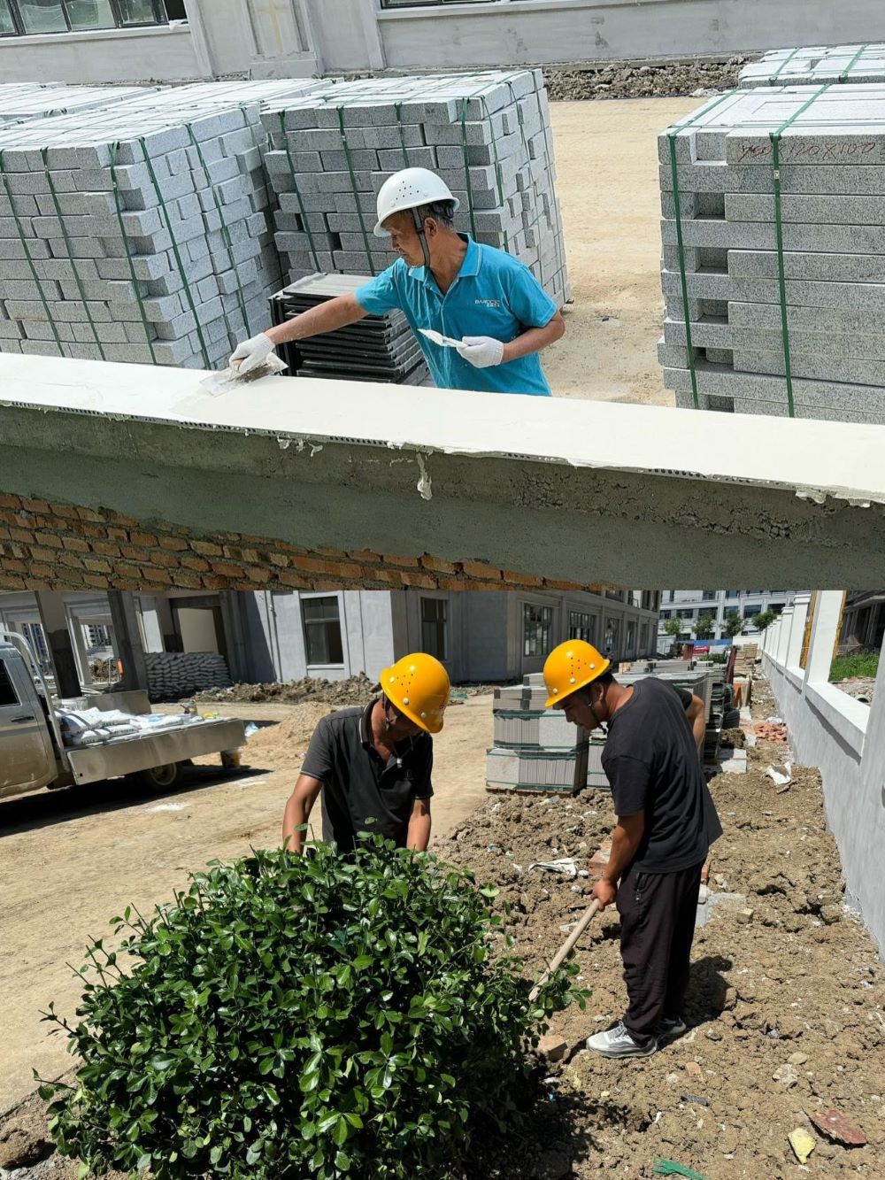 圖為圍墻披膩?zhàn)?、室外綠化種植