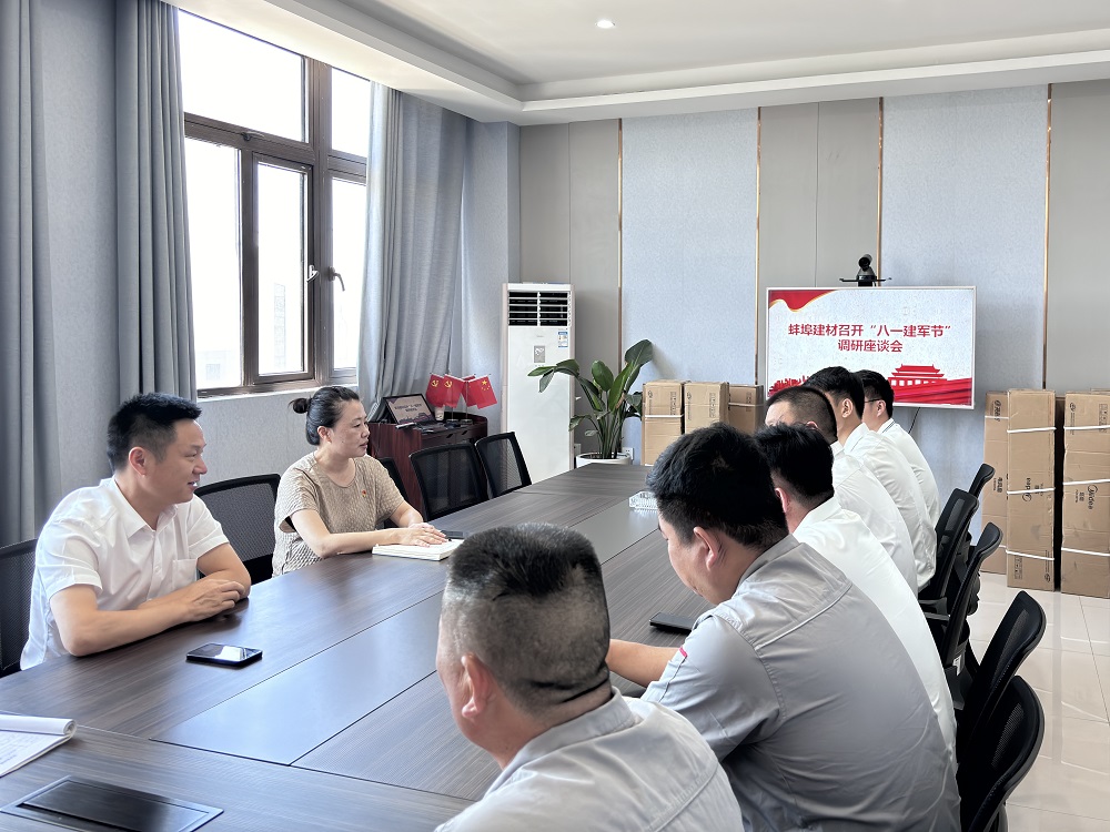 7月31日上午,蚌埠建材召開“八一”建軍節(jié)調(diào)研座談會,退役軍人暢所欲言,分享在部隊(duì)、生活中的經(jīng)歷、汗水和喜悅,暢談工作的經(jīng)驗(yàn)。