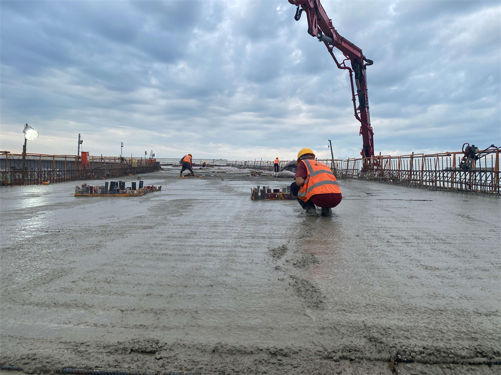 驕陽似火,在五蒙高速05標(biāo)項(xiàng)目包集樞紐Ck0+866匝道橋第五聯(lián)現(xiàn)澆箱梁頂板砼澆筑現(xiàn)場(chǎng),工人或俯身勞作,或仰頭檢查,或并肩協(xié)作,構(gòu)成了一幅壯麗的勞動(dòng)畫卷。