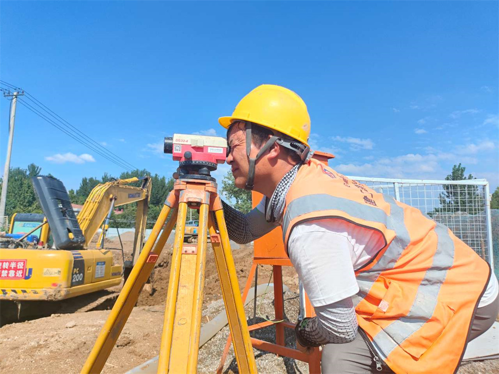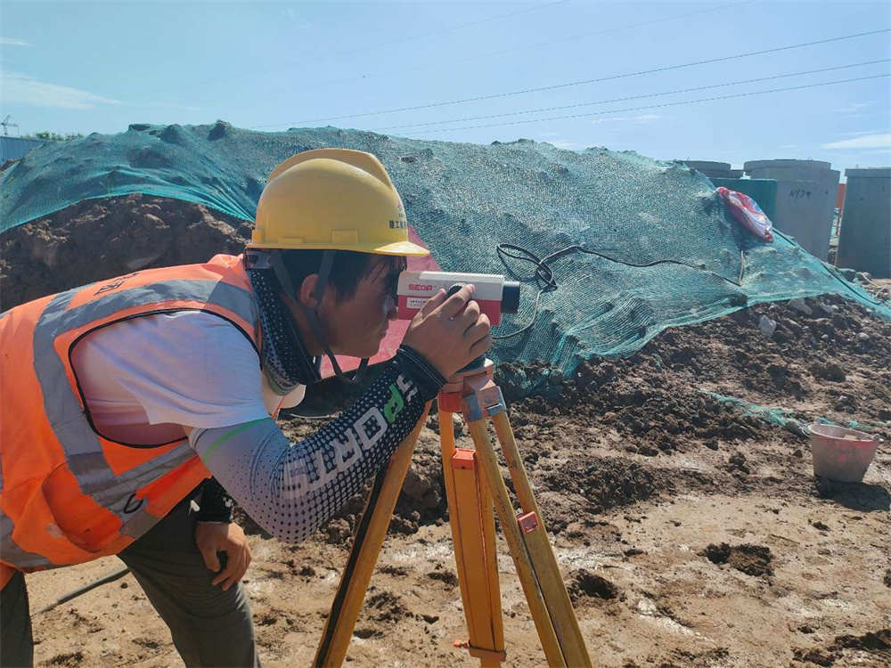 在淮北市高鐵西站綜合開發(fā)綜合開發(fā)項(xiàng)目創(chuàng)新大道路段,隨處可見忙碌的身影,施工員和建設(shè)工人們正在進(jìn)行污水溝槽高程測(cè)量和雨水管井室溜槽砌筑等工作。