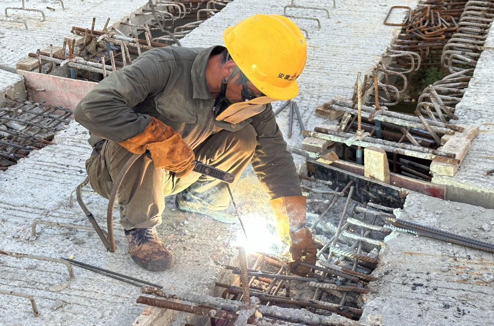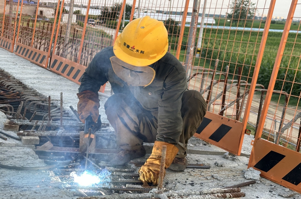 皖北大地,盛夏時(shí)節(jié),安徽水利亳蒙高速項(xiàng)目現(xiàn)場(chǎng)如火如荼,機(jī)械轟鳴,展現(xiàn)出一派繁忙而有序的建設(shè)景象。走進(jìn)亳蒙高速施工現(xiàn)場(chǎng),有一群人,身著厚重的防護(hù)服,手持熾熱的電焊槍,在金屬世界里編織著堅(jiān)實(shí)的未來(lái),他們——是安徽水利交通分公司亳蒙高速項(xiàng)目電焊工人。