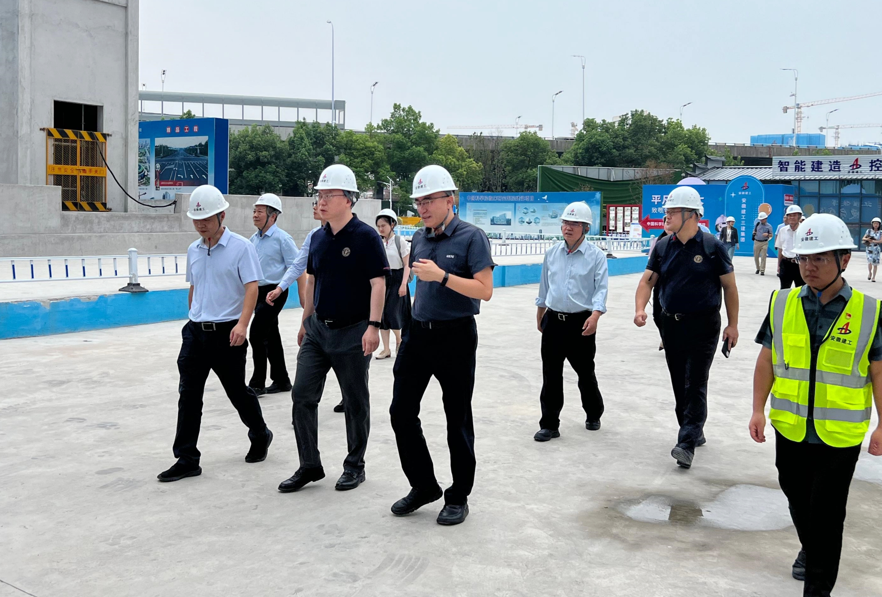 8月19日上午,中國(guó)科學(xué)技術(shù)大學(xué)黨委常委、校長(zhǎng)助理薛天,上??萍即髮W(xué)黨委副書記、副校長(zhǎng)江舸等一行到建工三建承建的中國(guó)科學(xué)院臨床研究醫(yī)院建設(shè)項(xiàng)目調(diào)研。