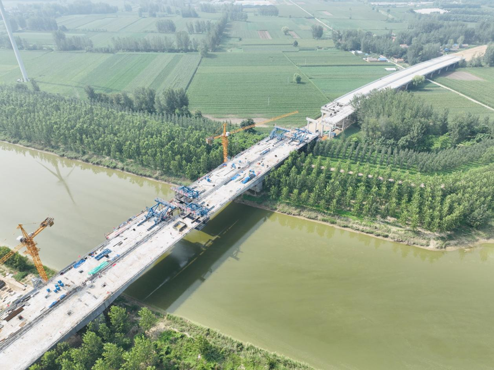 8月21日,建工投資徐淮阜高速淮北段項目沱河特大橋主橋右幅順利合龍!