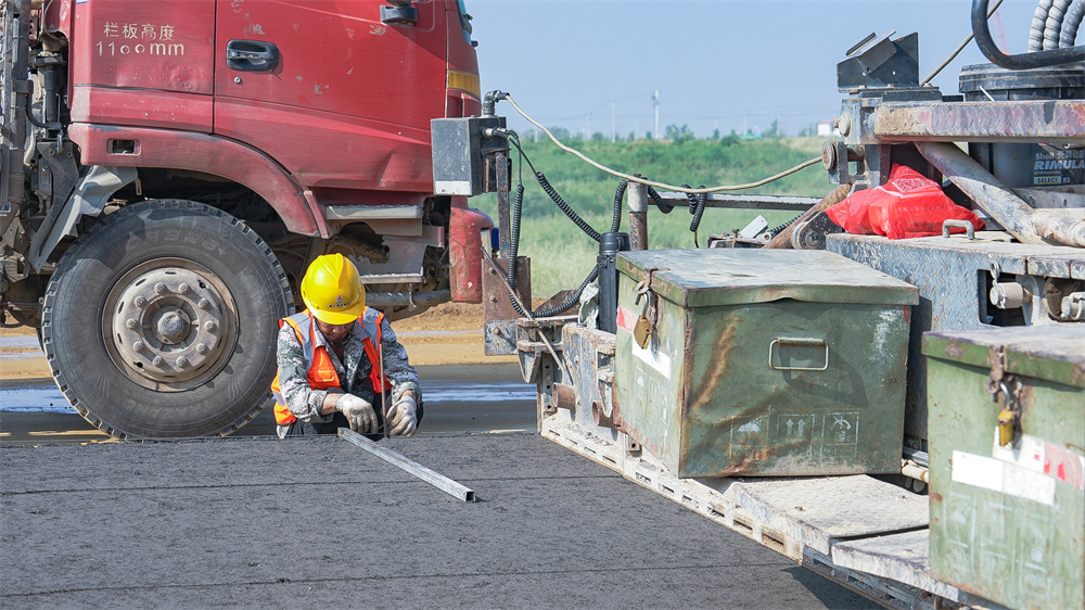 為確保水穩(wěn)底基層施工優(yōu)質(zhì)高效完成,項目團隊科學制定施工方案,提前組織施工人員進行技術交底和安全教育,儲備充足原材料,為水穩(wěn)底基層攤鋪做足準備工作。攤鋪前,項目部進行了壓實度、彎沉試驗,并對水穩(wěn)材料配合比、攤鋪速度、碾壓工藝等進行了數(shù)論驗證。施工過程中,項目管理人員到位盯崗,嚴格執(zhí)行標準化施工要求,并在現(xiàn)場準備了充足的解暑飲品和藥物,保證作業(yè)人員施工安全。