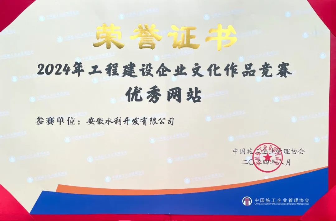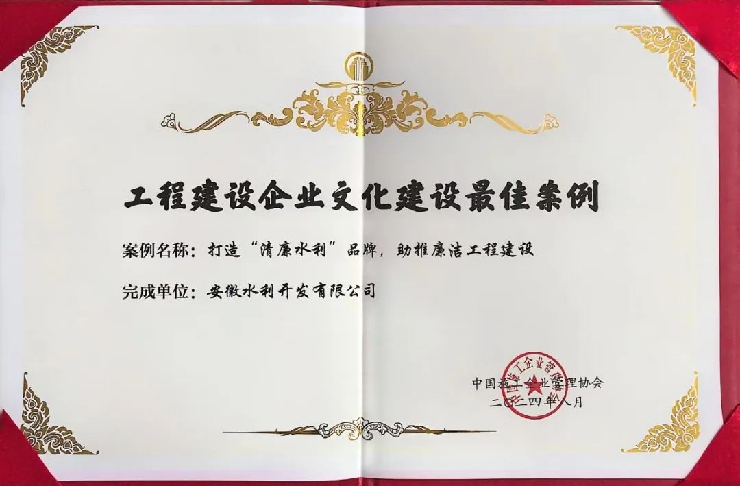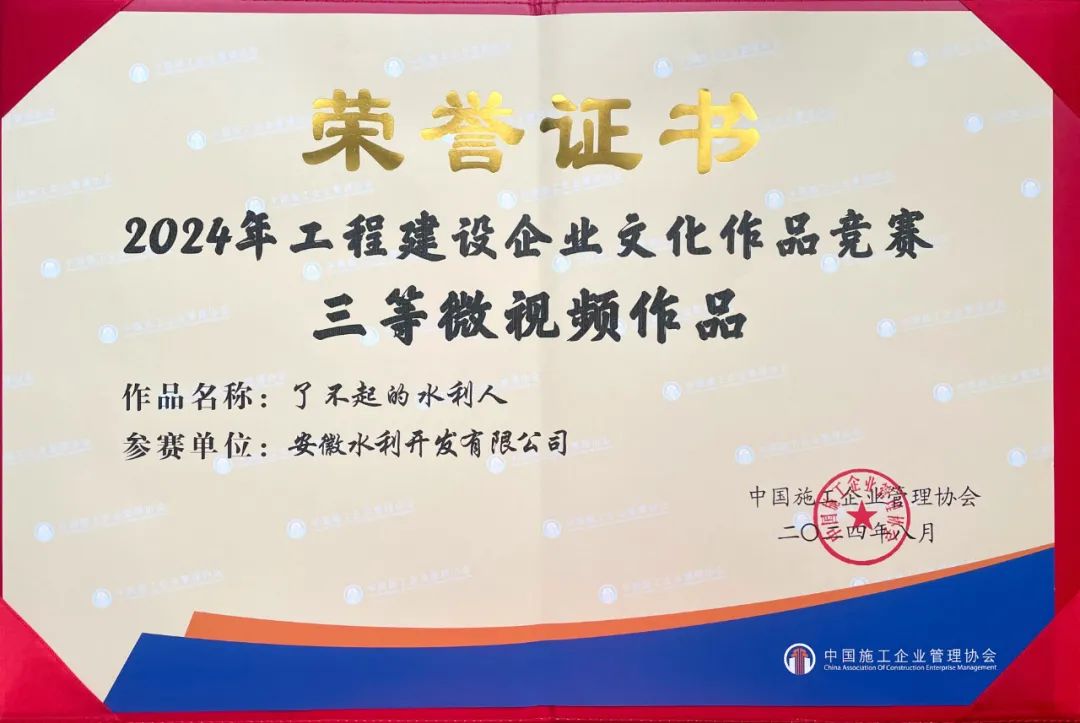 載譽(yù)前行│安徽水利獲評(píng)多項(xiàng)中施企協(xié)企業(yè)文化建設(shè)成果榮譽(yù)