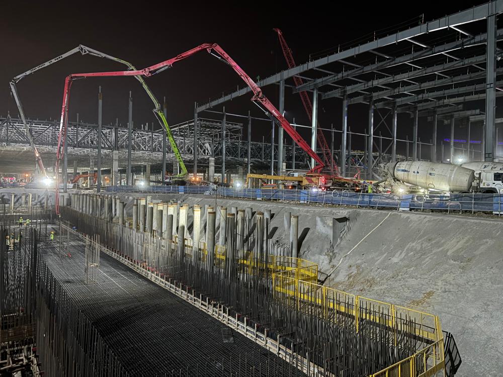 接到澆筑計劃后,安徽瑞特高度重視,三站協(xié)同,迅速行動,召開專題會議,制定詳細的保供方案。面對大體量的混凝土澆筑和緊迫的工期要求,各站點及部門通力合作、多措并舉,科學(xué)調(diào)度、統(tǒng)籌管理;值班人員24小時輪班值崗,嚴控澆筑全過程。施工澆筑任務(wù)的順利完成,得益于精心的組織、及時的供應(yīng)和優(yōu)良的質(zhì)量,充分展現(xiàn)安徽瑞特高效的履約服務(wù)能力,獲得項目方高度認可。