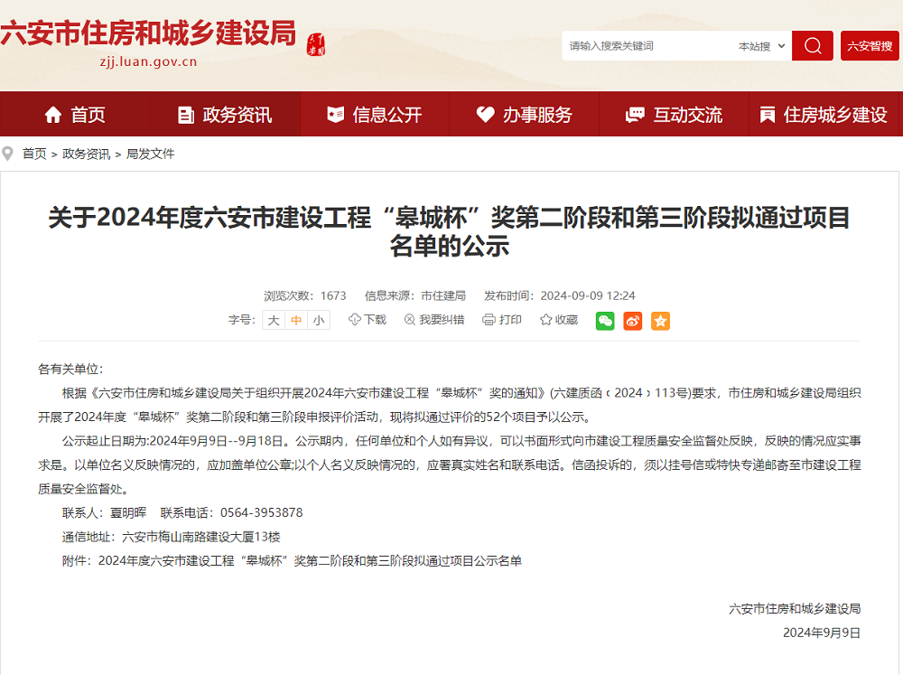 近日,由建工建投承建的舒城縣城西公交樞紐站項目經(jīng)過資料審核、現(xiàn)場復(fù)查等評審環(huán)節(jié),榮獲六安市住房和城鄉(xiāng)建設(shè)局頒發(fā)的2024年度六安市建設(shè)工程“皋城杯”獎榮譽(yù)稱號,該獎項是六安市市級建設(shè)工程質(zhì)量最高榮譽(yù)獎。