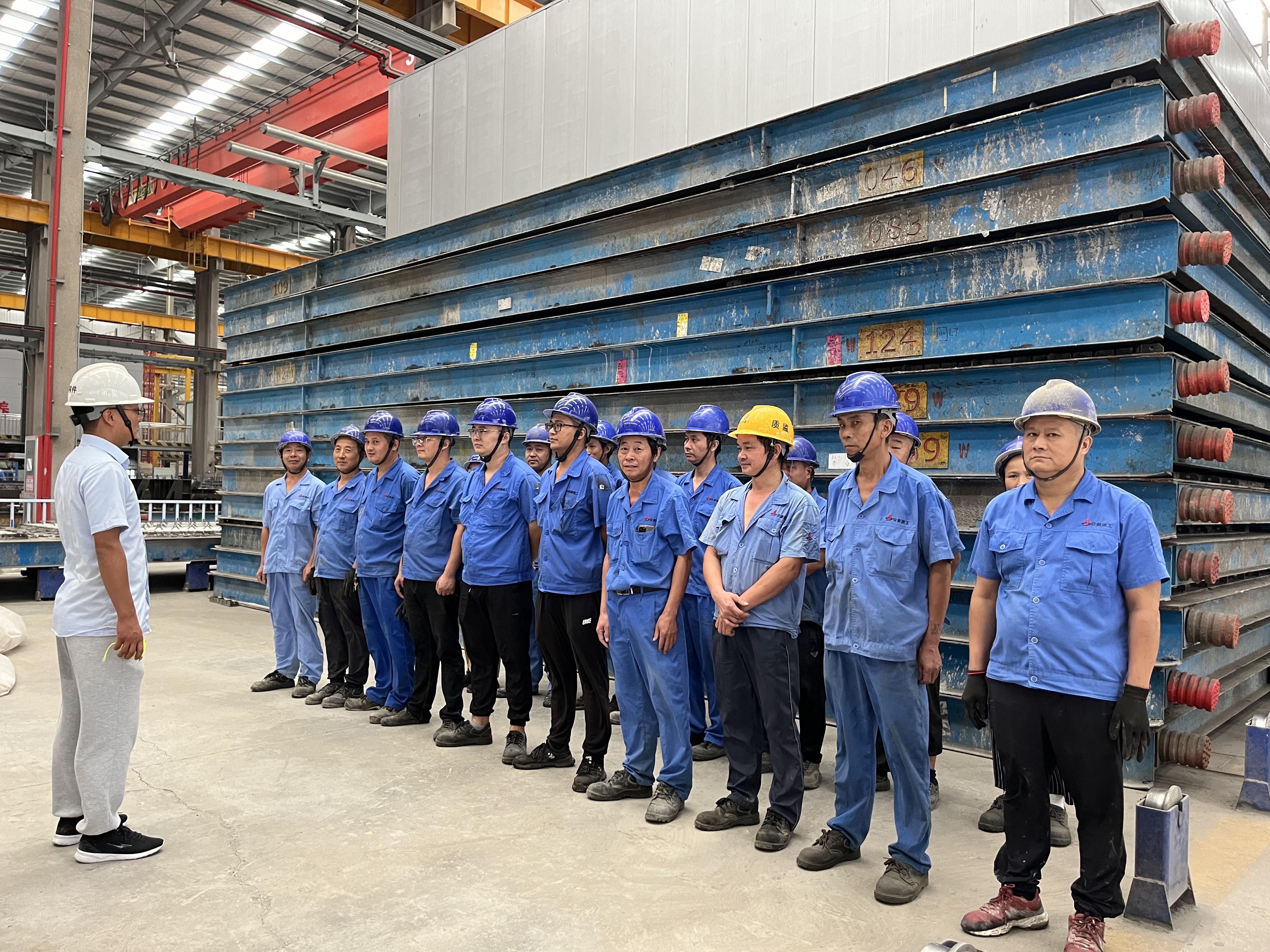 生產(chǎn)過程中,黨員充分發(fā)揮先鋒模范作用,全天候跟班作業(yè),全過程質(zhì)量把控,對(duì)預(yù)制梁柱的模具組裝校正、鋼筋籠安裝調(diào)整、預(yù)留預(yù)埋、混凝土澆筑振搗、拆模養(yǎng)護(hù)等工序嚴(yán)格把關(guān),及時(shí)調(diào)整優(yōu)化生產(chǎn)工藝。同時(shí),管理團(tuán)隊(duì)重視人才隊(duì)伍的培育,定期對(duì)關(guān)鍵崗位作業(yè)人員進(jìn)行理論實(shí)操培訓(xùn),不斷強(qiáng)化生產(chǎn)技能,不斷提高生產(chǎn)效率。