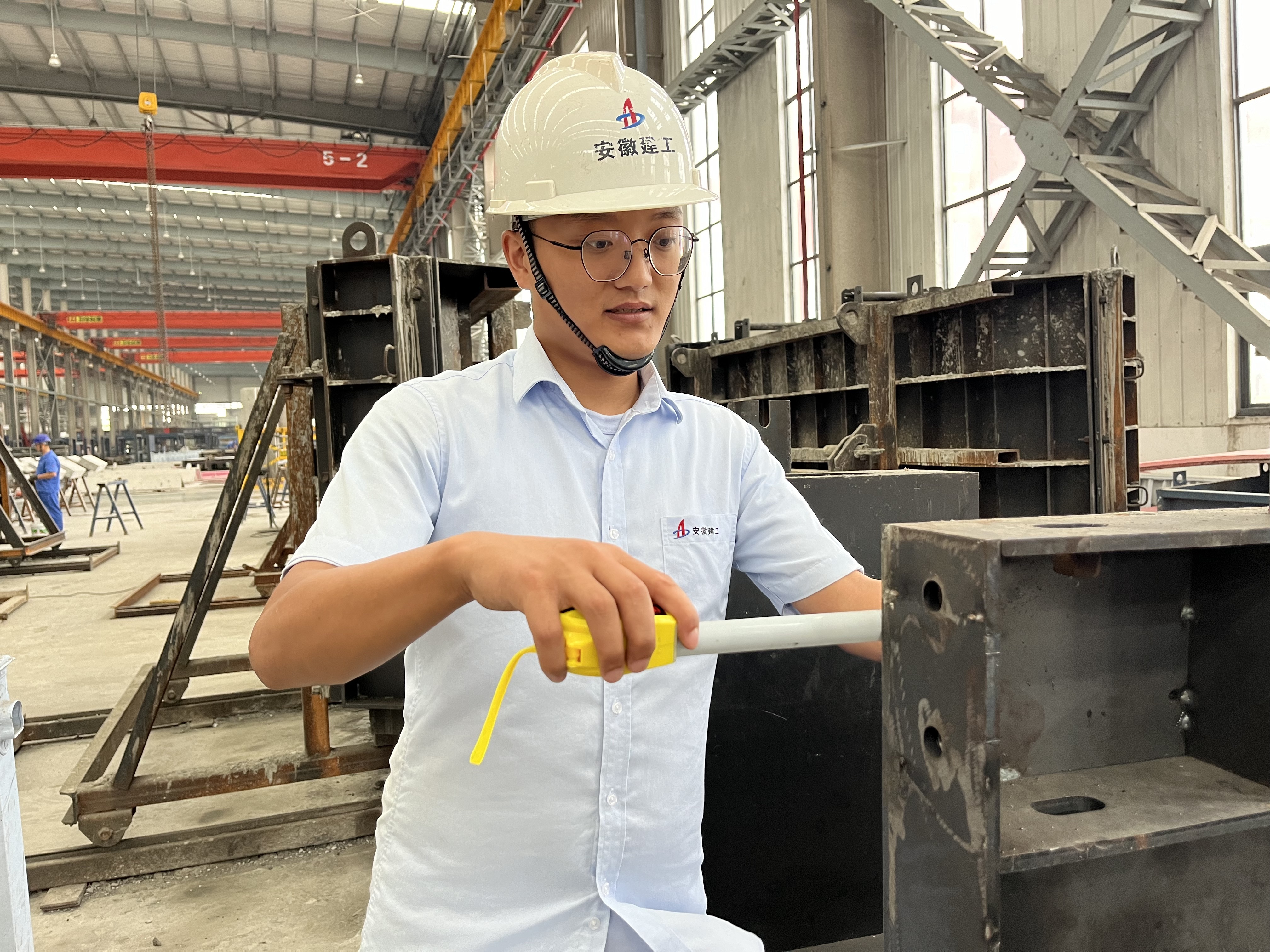 項(xiàng)目成功離不開人,北城公司離不開人才。此次項(xiàng)目的順利完工離不開崗位上的每個(gè)人。田轉(zhuǎn)轉(zhuǎn)是一名入黨積極分子,也是此次大眾廠房項(xiàng)目預(yù)制柱生產(chǎn)線負(fù)責(zé)人,他是第一批參與地鐵管片生產(chǎn)線建設(shè)、生產(chǎn)管理重要一員,也是車間異型構(gòu)件生產(chǎn)線主要負(fù)責(zé)人。面對(duì)這類“特殊”的構(gòu)件,他擁有著豐富的生產(chǎn)經(jīng)驗(yàn)以及應(yīng)對(duì)突發(fā)問題的能力。項(xiàng)目生產(chǎn)階段正好是盛夏時(shí)期,即使“轉(zhuǎn)一轉(zhuǎn)”,身上都會(huì)汗?jié)?,他基本全天守在車間生產(chǎn)線,陪同工人,每一個(gè)工序進(jìn)行檢查、驗(yàn)收,遇到問題及時(shí)調(diào)整、及時(shí)記錄、及時(shí)反饋、及時(shí)總結(jié)。正因?yàn)橛辛怂娜獭芭惆椤?,工人們心“穩(wěn)”了,手“快”了,工時(shí)、材料“省”了。除了他,還有很多像他一樣的人忙碌在車間,在工位。大家共同的努力,確保了構(gòu)件順利生產(chǎn)。