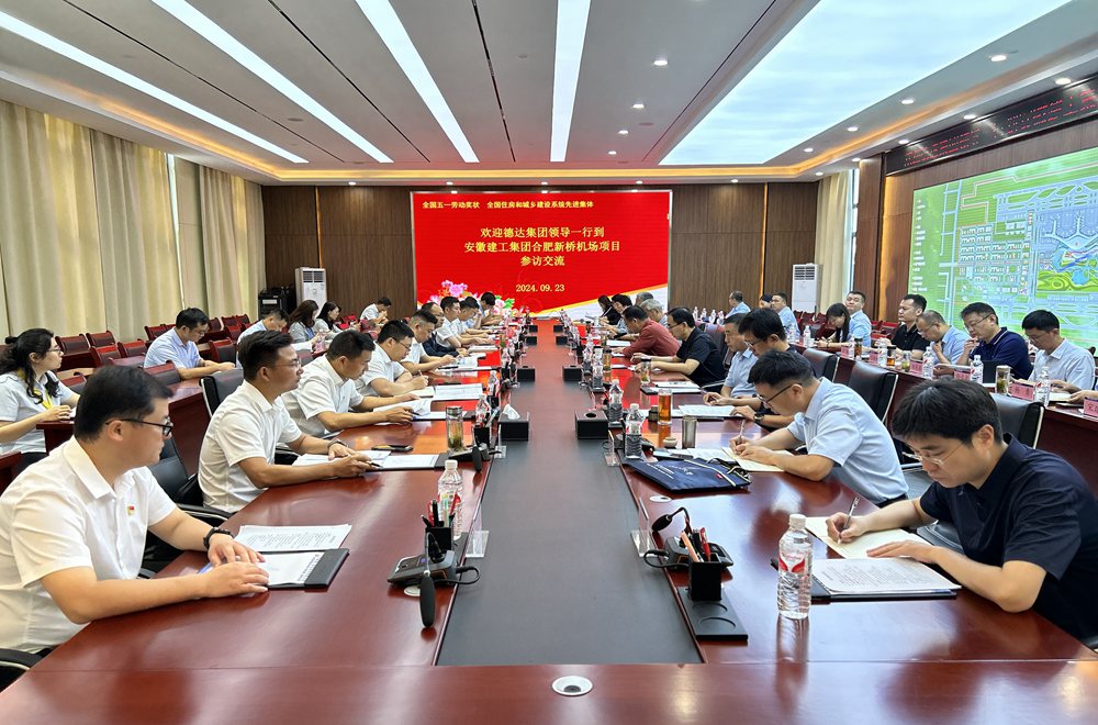 9月23日,德州德達投資控股集團黨委書記、董事長呂光坤,合肥工業(yè)大學高等培訓教育中心副主任湯匯道一行到安徽建工合肥新橋國際機場T2航站樓施工總承包工程和綜合交通中心(含軌道引入)及配套工程項目參訪交流。建工總承包黨委書記、總經理傅宏林,建工路橋黨委委員、副總經理程濤熱情接待并座談交流。