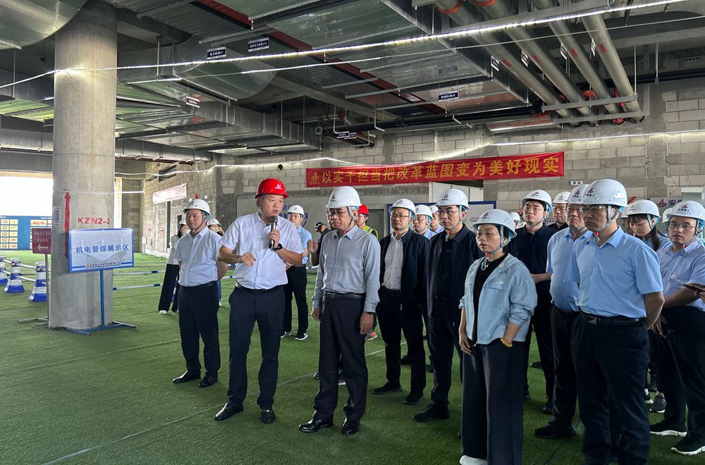 呂光坤一行深入項目現(xiàn)場實地參觀,聽取項目概況、建設進展、安全技術、質量管理、智能建造等情況,并圍繞項目管理、招投標流程、供應商評價體系和風險控制、高速公路建設運營等模塊座談交流。