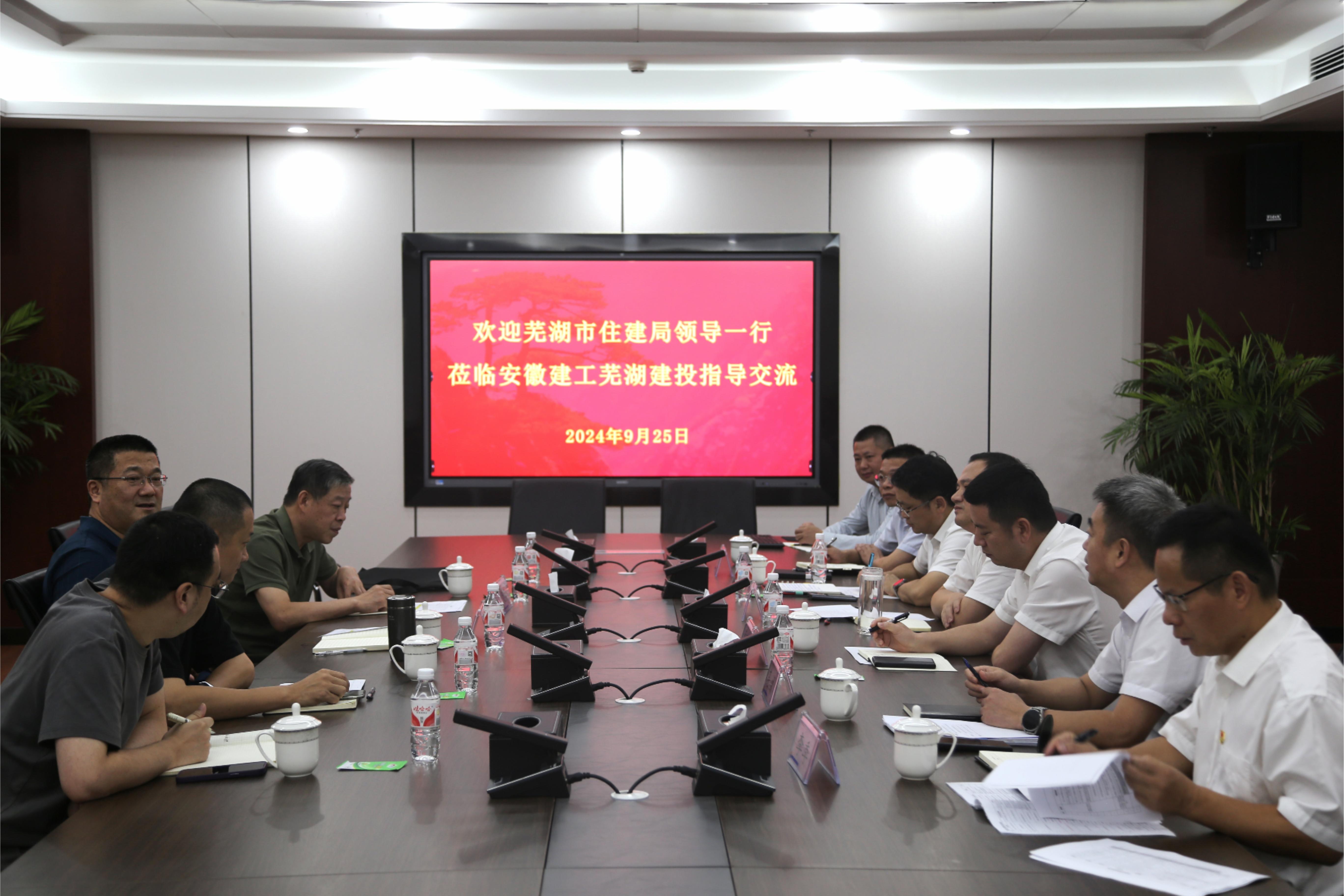 9月25日下午,蕪湖市住房和城鄉(xiāng)建設(shè)局黨委委員、副局長(zhǎng)吳文斌一行來(lái)安徽建工(蕪湖)建設(shè)投資有限公司調(diào)研指導(dǎo),建工總承包黨委書記、總經(jīng)理傅宏林,建工路港黨委書記、董事長(zhǎng)錢葉琳共同接見,政企雙方親切交流并召開座談會(huì)。