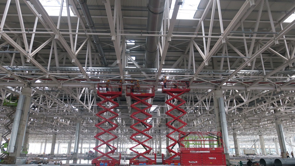 在建工安裝合肥經(jīng)開(kāi)區(qū)臨湖智能制造產(chǎn)業(yè)園項(xiàng)目現(xiàn)場(chǎng),項(xiàng)目部管理人員及水電班組、通風(fēng)班組、消防班組、虹吸雨水班組施工人員夜以繼日加班加點(diǎn)搶抓進(jìn)度。30名項(xiàng)目管理人員,226名施工人員,96輛登高機(jī)械,采取“白加黑” 、“5+2”模式施工作業(yè),確保各區(qū)域各專(zhuān)業(yè)施工生產(chǎn)穩(wěn)步推進(jìn)。 目前正在進(jìn)行車(chē)間一通風(fēng)系統(tǒng)、雨水系統(tǒng)、消防系統(tǒng),壓縮空氣與循環(huán)水系統(tǒng)等安裝作業(yè),站房一同步開(kāi)展管線預(yù)埋與預(yù)制工作。本周已完成車(chē)間一風(fēng)管安裝約4200平方米,雨水管道安裝約1100米,消防管道安裝約590米,橋架安裝約600米。
