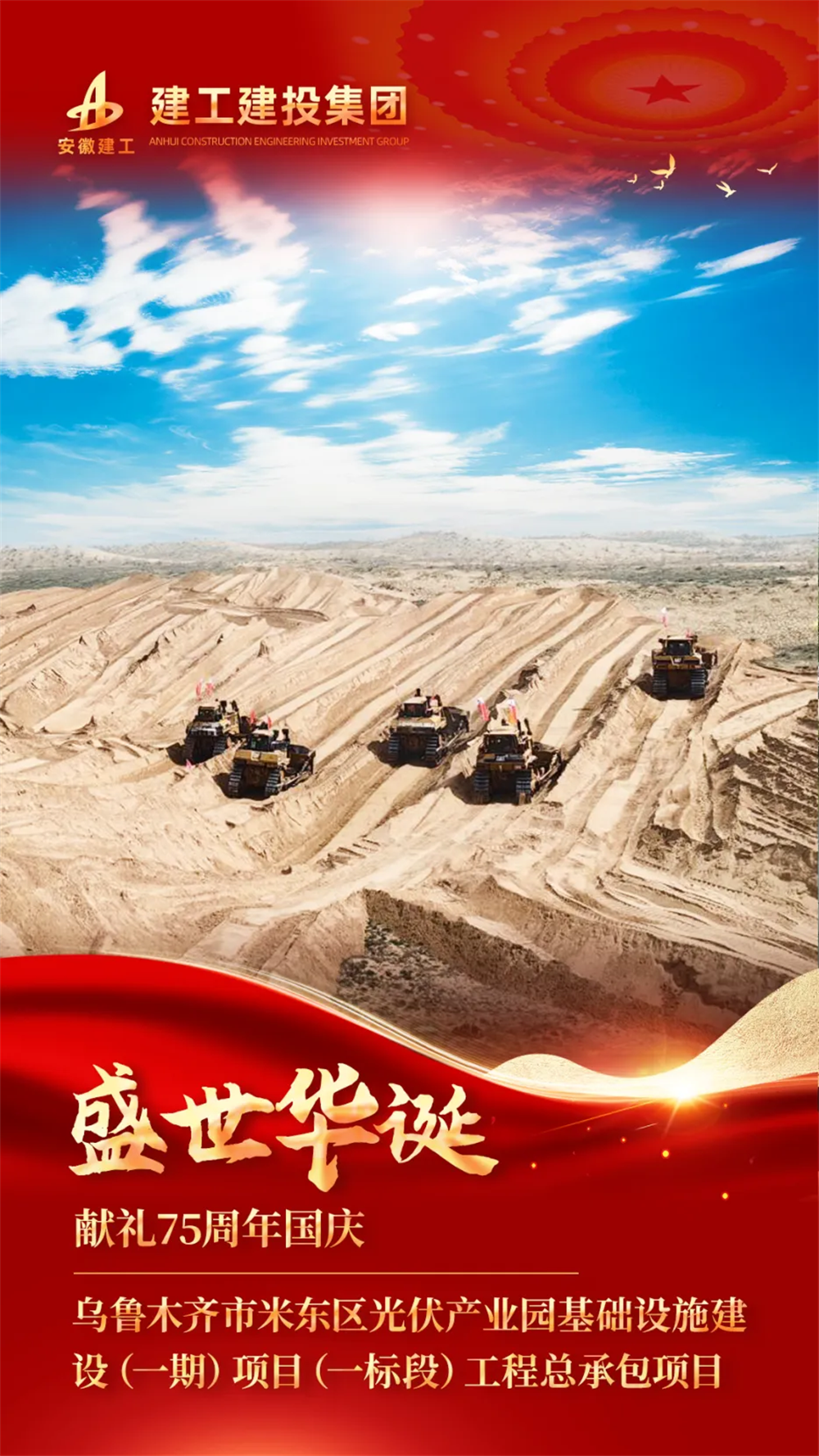 未來(lái),建工建投集團(tuán)烏魯木齊市米東區(qū)光伏產(chǎn)業(yè)園基礎(chǔ)設(shè)施建設(shè)(一期)項(xiàng)目(一標(biāo)段)工程總承包項(xiàng)目將繼續(xù)秉持“特別能吃苦 特別能戰(zhàn)斗”的精神,不忘初心、牢記使命,不負(fù)眾望,定為古爾班通古特沙漠再添一條嶄新的進(jìn)出要道。