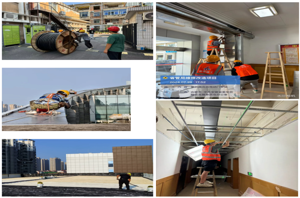省管局維修改造工程點多、面廣、體量大,又涉及文保和涉密單位,施工安全要求高、時間受限多、工期任務緊、協(xié)調(diào)難度大。為保證按期履約,公司調(diào)配13人組成精干管理施工團隊,組織吊車、登高車、舉臂車等15臺大型機械設備進場,按照“無策劃不施工”原則,科學制定施工計劃,層層分解進度指標,明確目標壓實責任。項目將安全綠色理念貫徹到施工生產(chǎn)的全過程,提前編制安全文明施工方案,加強施工現(xiàn)場安全管理和檢查,合理劃分工區(qū),以各區(qū)段平行施工、交叉作業(yè)的方式組織施工,讓項目建設環(huán)保低碳,優(yōu)質(zhì)高效。