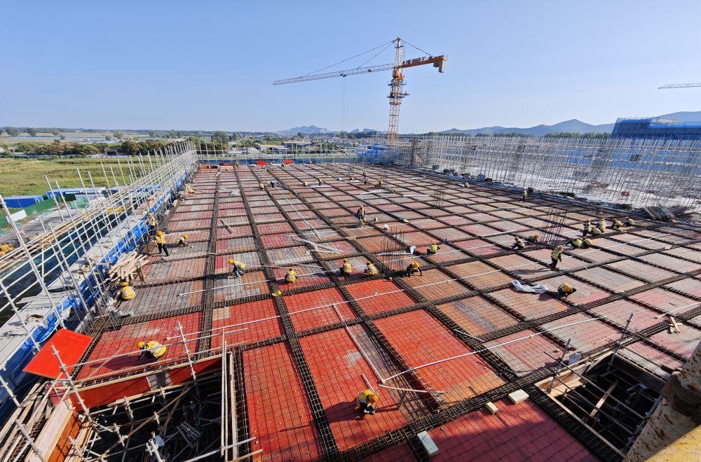 零碳智慧快遞電商集散中心一期項(xiàng)目,國慶期間近120名建設(shè)者堅(jiān)守崗位,完成1100方主體混凝土澆筑、200噸鋼筋綁扎、150米消防管道安裝工作。截止目前,一層砌體完成80%,AB區(qū)主體已澆筑完成,進(jìn)入鋼結(jié)構(gòu)安裝施工階段。