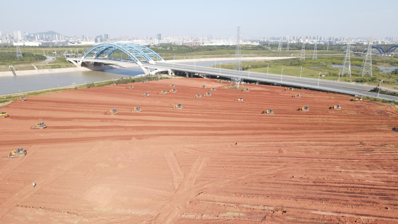項目位于合肥市高新區(qū)引江濟淮蜀山樞紐南側(cè),復墾面積達5669畝,工期緊,任務(wù)重。為了交上一張高質(zhì)量的“速寫”答卷,項目部聚焦“硬骨頭”,錨定關(guān)鍵節(jié)點,安排專業(yè)人員根據(jù)現(xiàn)場各區(qū)域表土、有效土及紅砂巖實際存儲情況結(jié)合原復墾方案實時調(diào)整復墾高程,確保各區(qū)域內(nèi)部土方最終平衡,并與設(shè)計院密切配合,及時完善設(shè)計內(nèi)容,推進施工圖出圖進度,確保施工圖紙在大批量土方等關(guān)鍵節(jié)點完成前提供,避免返工風險。過程中,項目嚴格按照濕法作業(yè)進行施工,配備高桿霧炮機及移動霧炮機及時降塵,各工區(qū)均配備灑水車對現(xiàn)場不間斷灑水降塵,確保現(xiàn)場滿足環(huán)保要求。