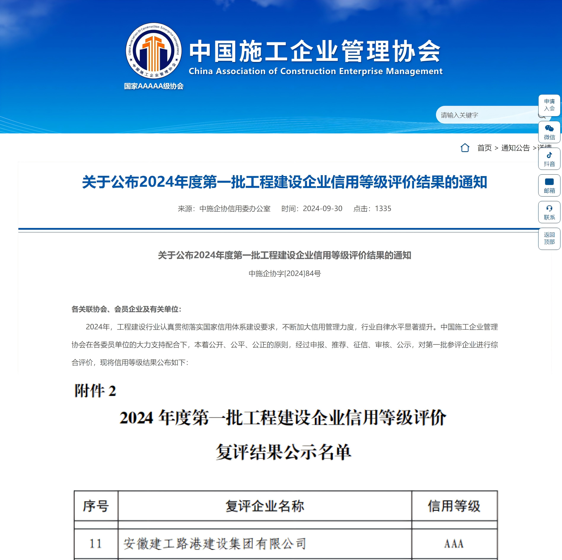 近日,中國(guó)施工企業(yè)管理協(xié)會(huì)傳來(lái)喜訊,公司成功通過2024年度的“AAA”信用復(fù)評(píng)。